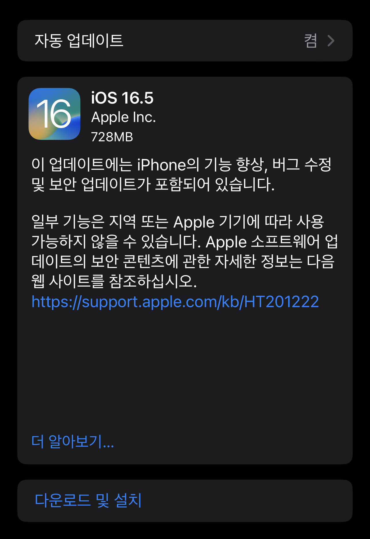 어제 날짜에 iOS 16.5가 배포 되었습니다.