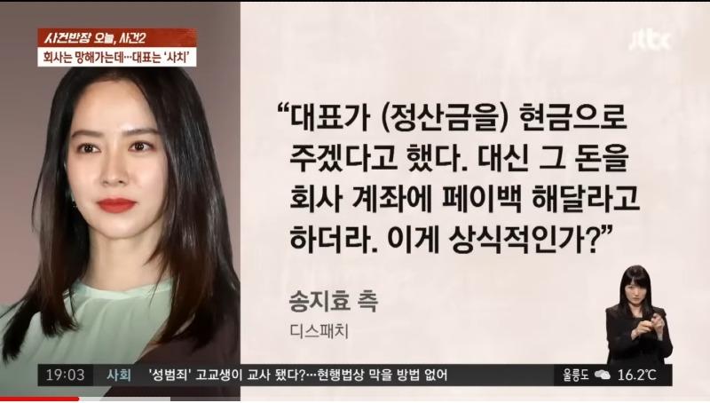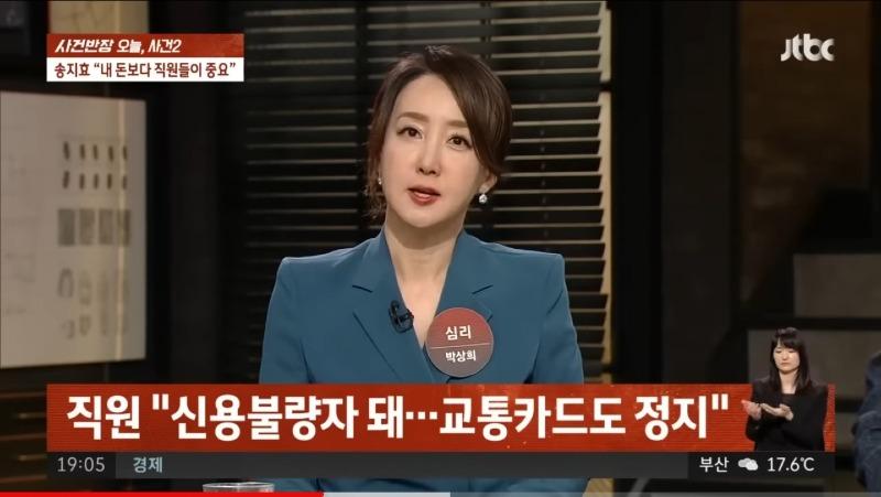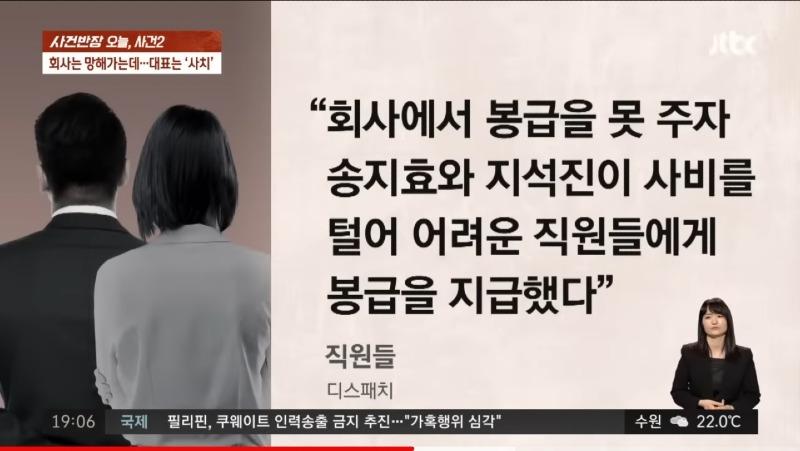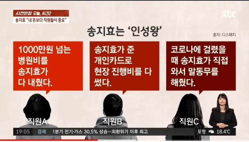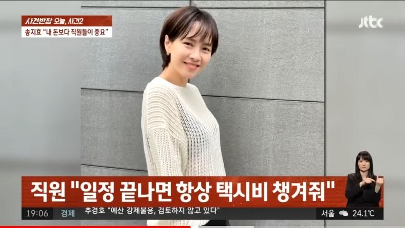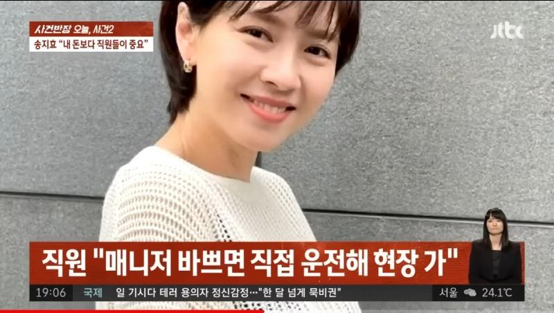 송지효는 본인도 임금을 받지 못했음에도 직원들의 힘든 상황에 앞장서 도움을 주었다. 송지효는 직원들의 병원비와 택시비 등을 대신 내주었으며, 개인 카드로 매니저들의 현장 진행비도 결제해 주었다고 한다.
