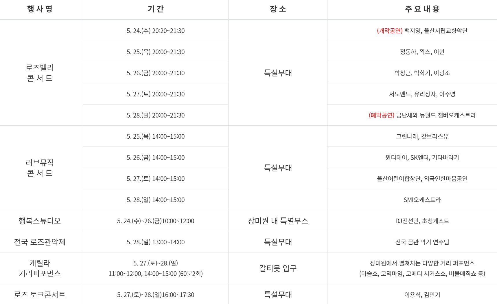 5월 24일부터 28일까지 5일간 울산대공원 장미원에서 열릴 예정이랍니다. 💖
