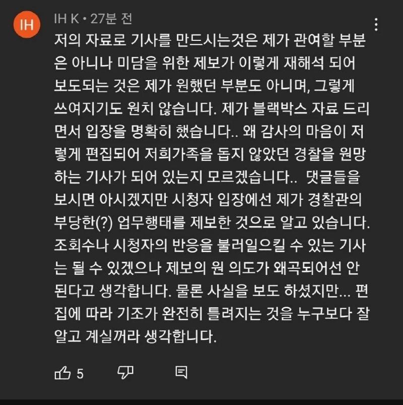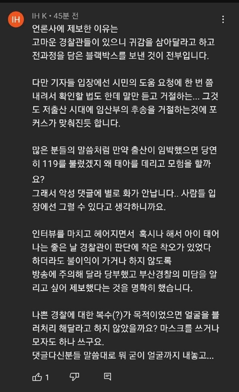 1. 언론 제보 이유는 경찰관들을 칭찬하기 위한것