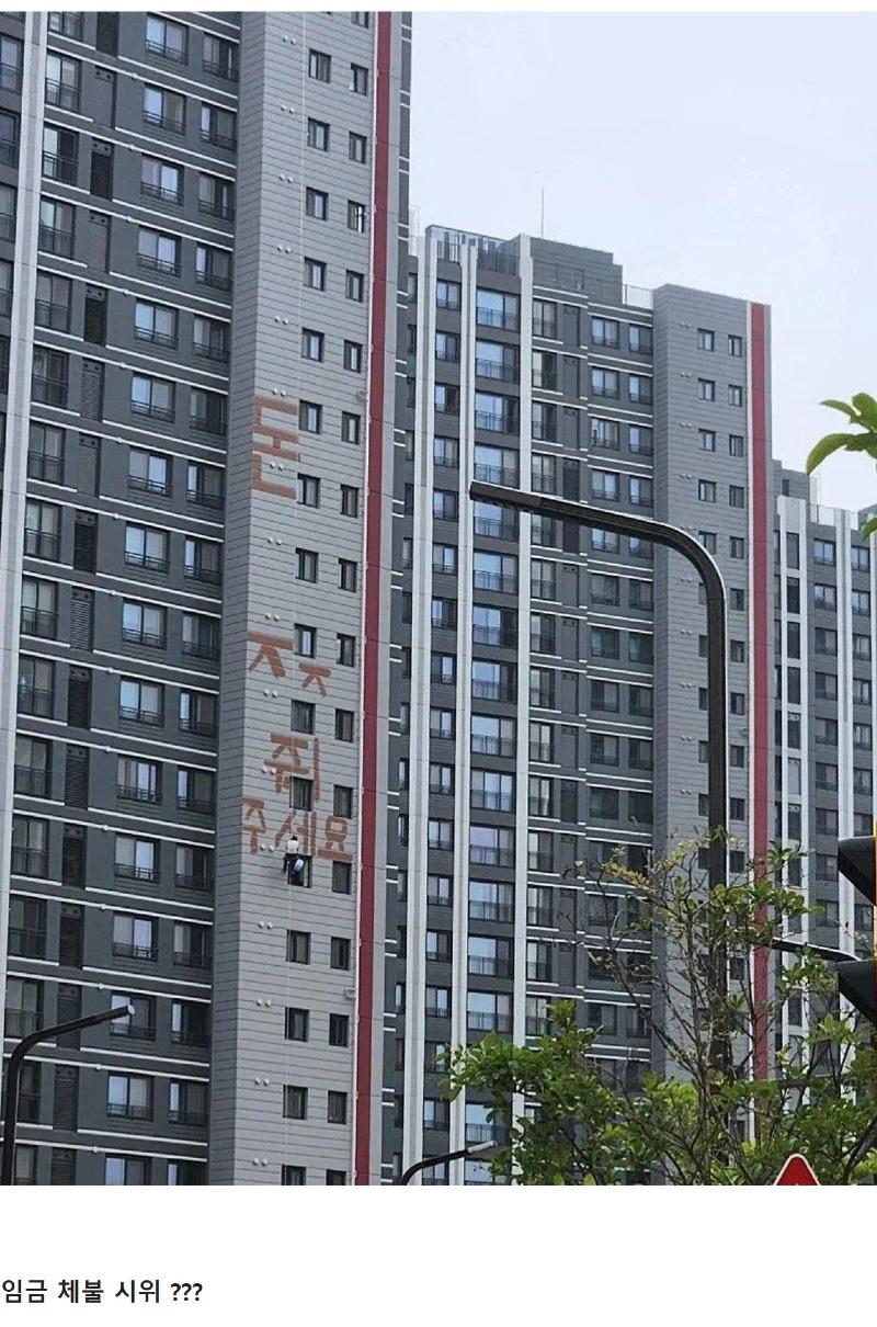 화성시의 신축 아파트 공사 현장에서 발생한 인상적인 사건에 대해 이야기하려 합니다. 선명한 색깔의 아파트 벽이 도색을 마치고, 그런데도 불구하고 "돈 주세요"라는 크고 뚜렷한 글자가 벽을 장식하고 있습니다. 그림을 그린 사람이 누구일까요?