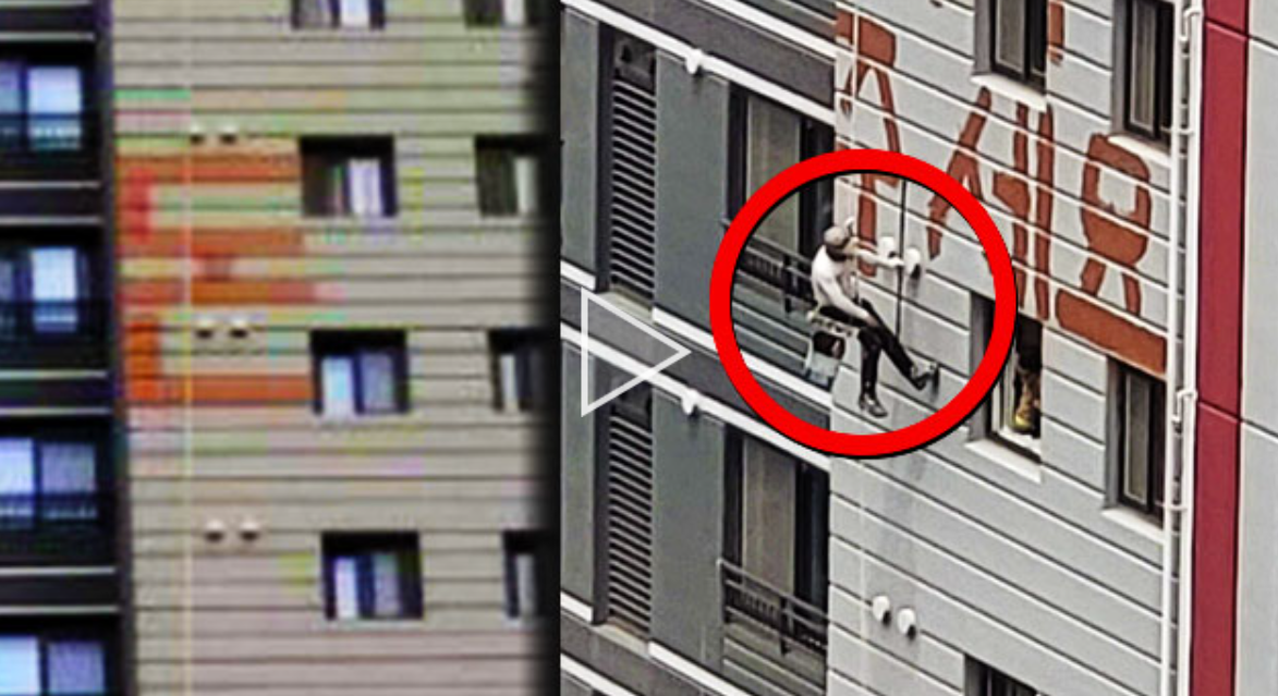 이 아파트 외벽에 그가 매달렸던 것은 오늘 오전 11시 반 쯤이었습니다. 사람이 아파트 외벽에 매달려 있다는 신고를 받고 출동한 소방과 경찰은 바닥에 에어 매트리스를 설치하여 만일의 상황에 대비하였습니다. 결국, 설득이 이루어진 후에, 약 4시간이 지난 오후 3시 반쯤에 그는 스스로 밧줄에서 내려온 것으로 확인되었습니다.