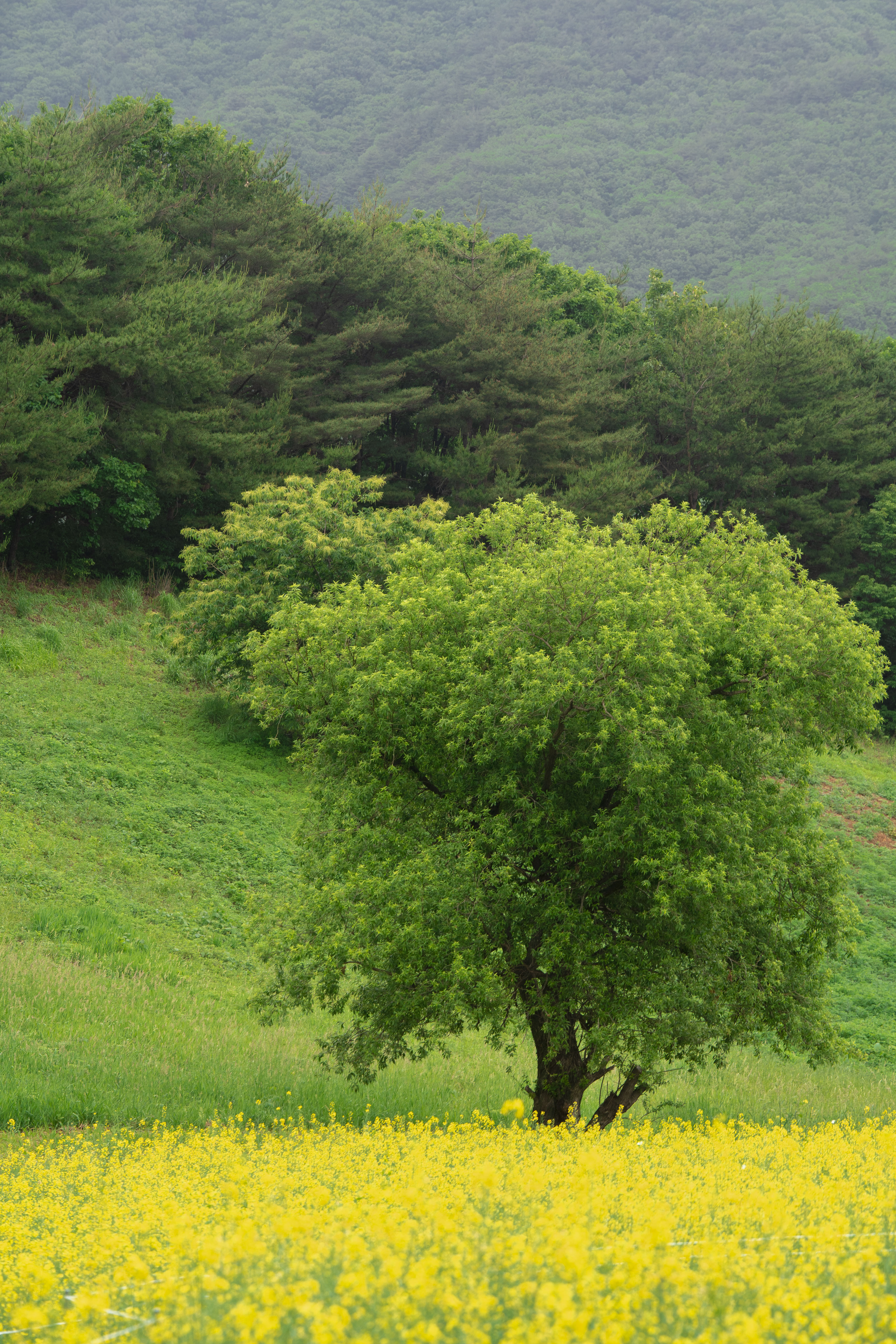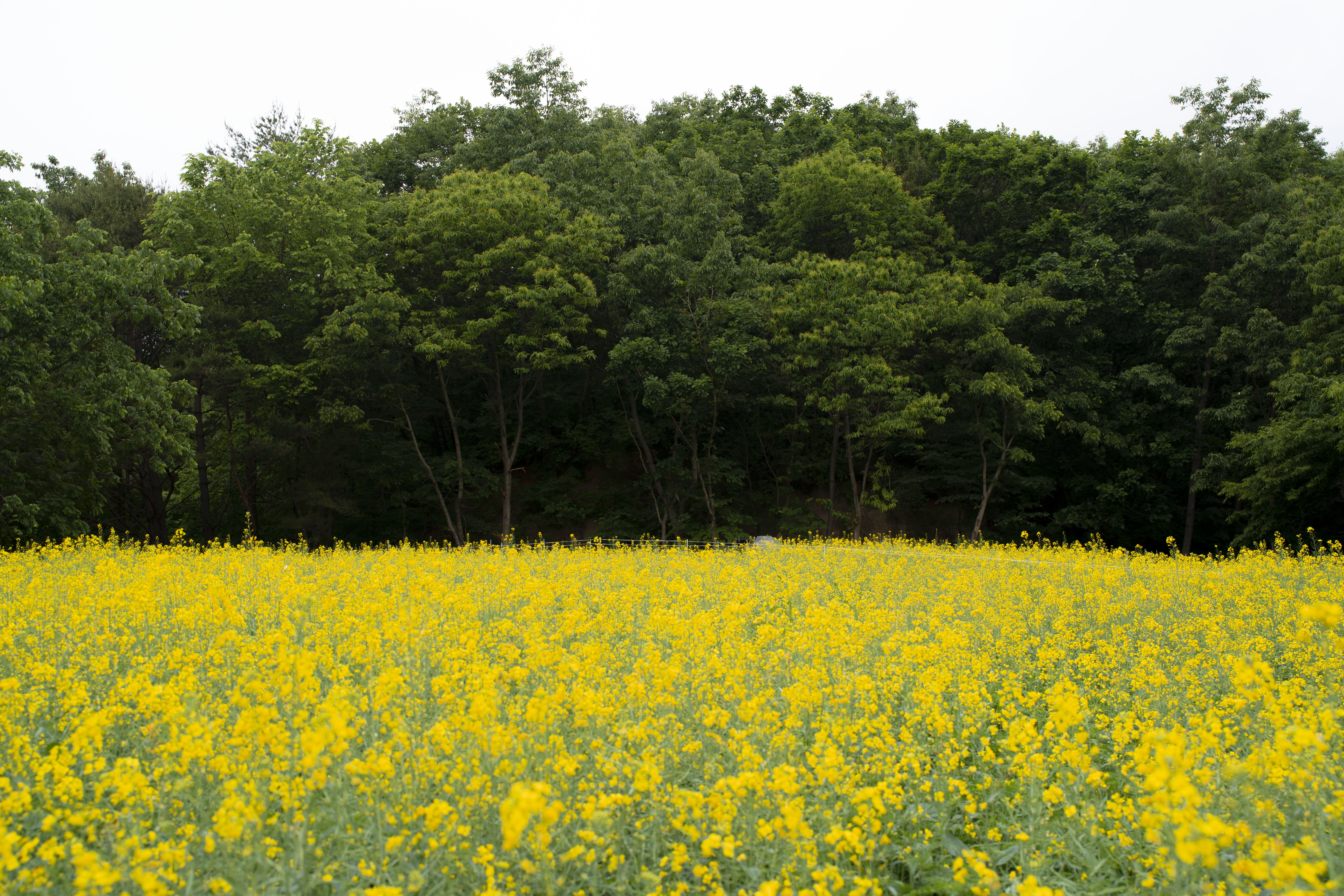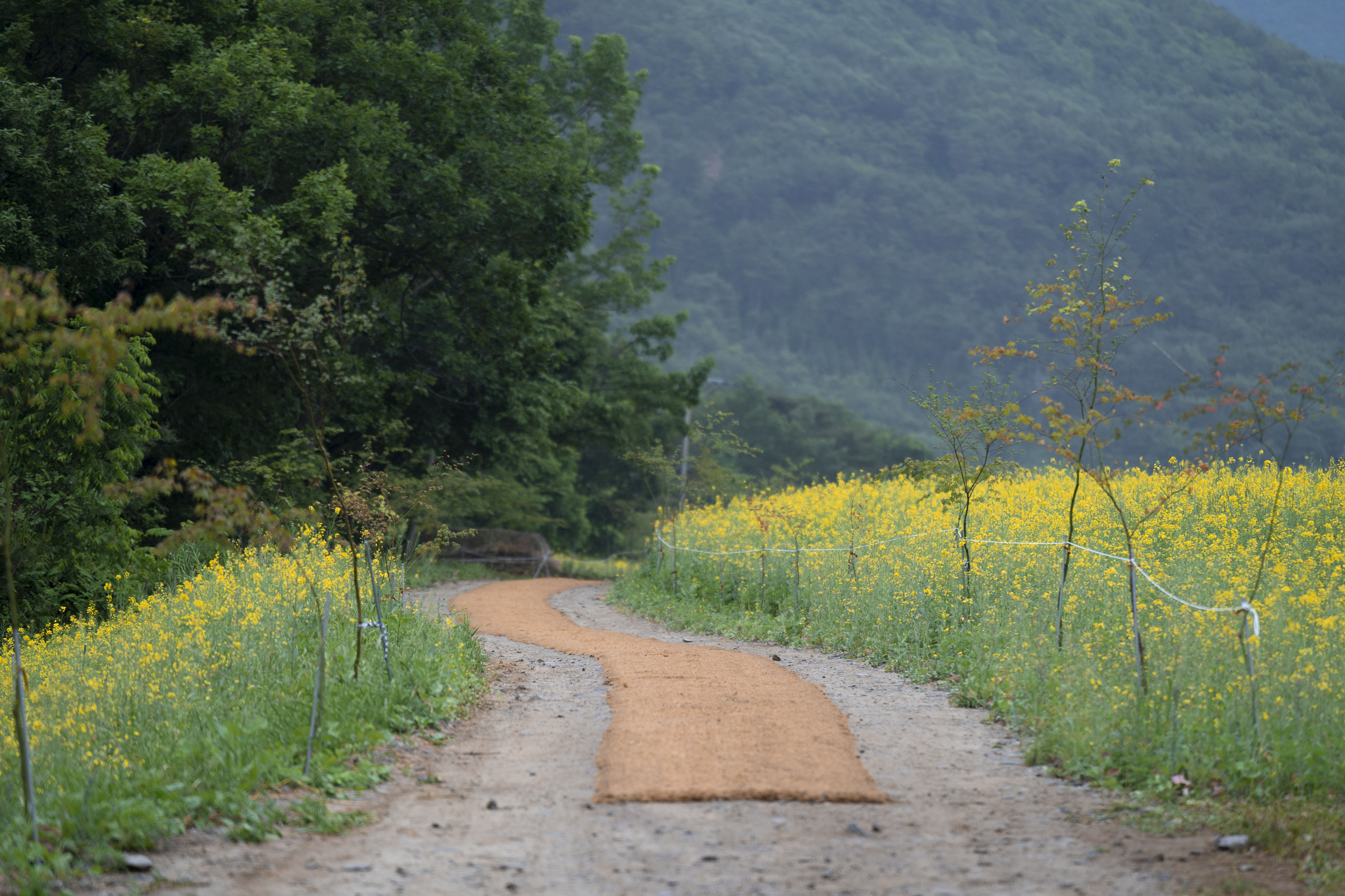 주민들의 땀과 노력이 만든 노란 유채꽃의 물결이 숲을 이루고 있습니다.