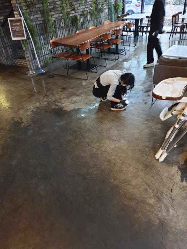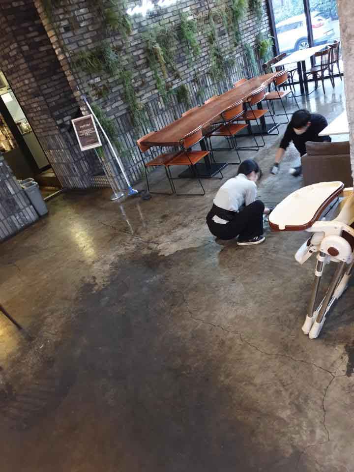 이 사진은 매장 직원들이 청소하는 모습입니다.