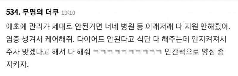 하지만 다이어트 안된다고 주사까지 지원을 해줬다는 관계자