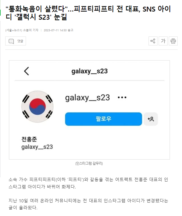 "피프티 갈등 속 '전홍준 대표'의 인스타그램 아이디 변화, 갤럭시 사건으로 암시?"