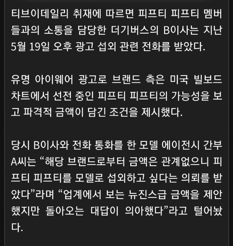 또 피프티갤에서 올라온 한 글의 내용 입니다.