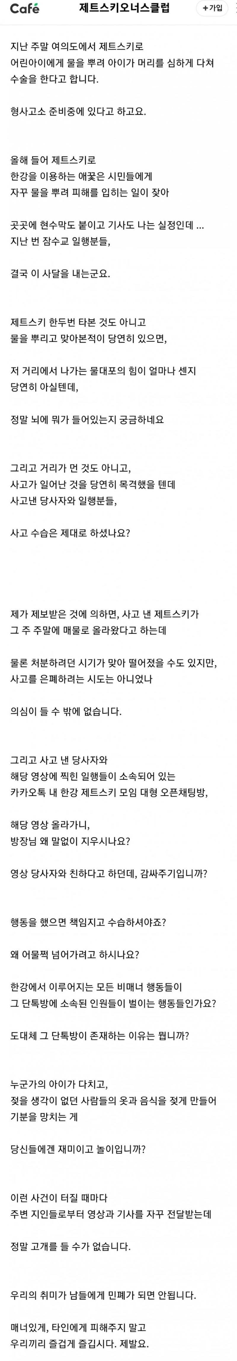 아래는 제트스키 카페에 올라온 본글 입니다.