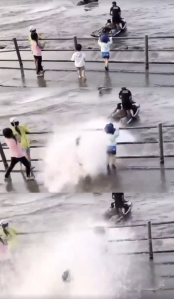 A씨가 공유한 영상에는 제트스키를 타던 남성이 아이들을 한 번 돌아보고 제트스키의 모터를 이용해 물대포를 뿌리는 모습이 녹화되었습니다. 그러던 중, 한 아이가 물대포에 휩쓸려 머리를 심하게 다치게 되었습니다.