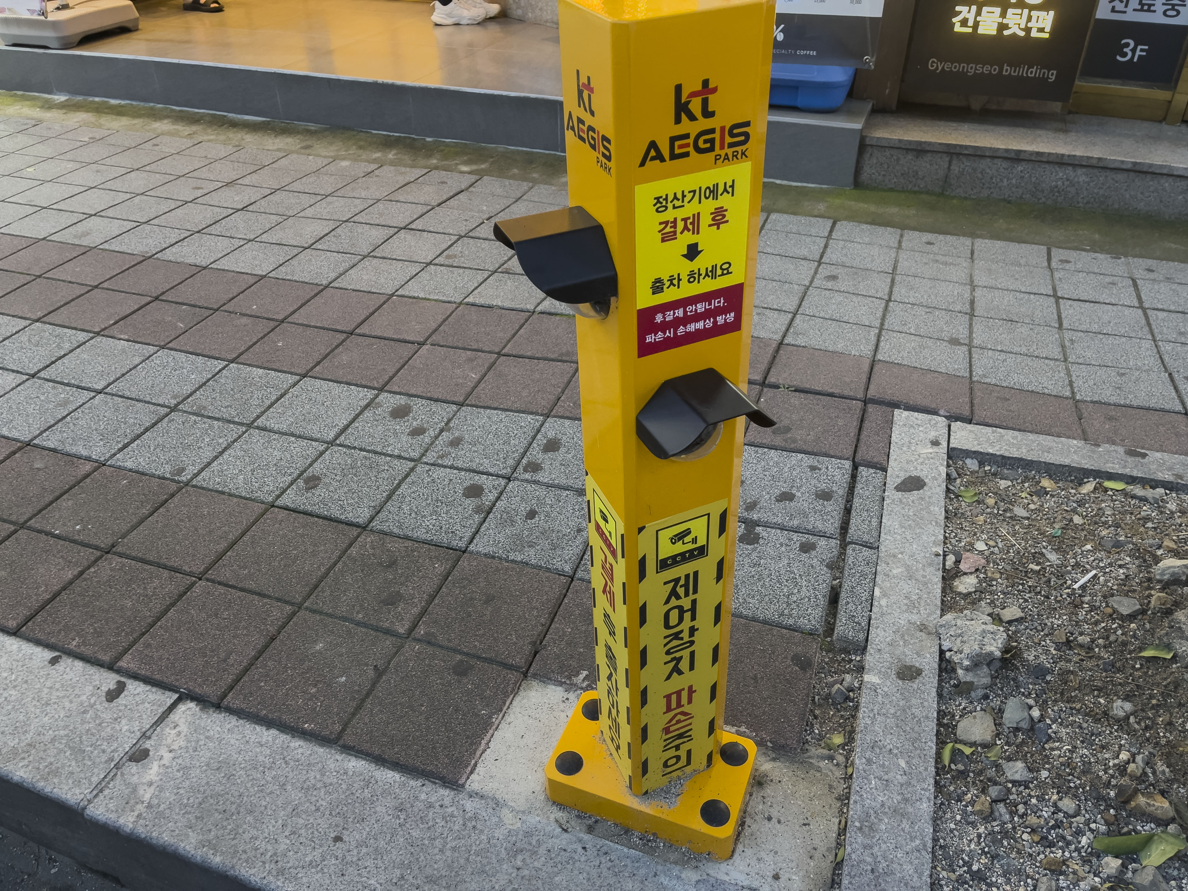 QR코드는 주차면마다 설치되어 있는 노란기둥을 보시면 QR코드를 확인할수가 있습니다.