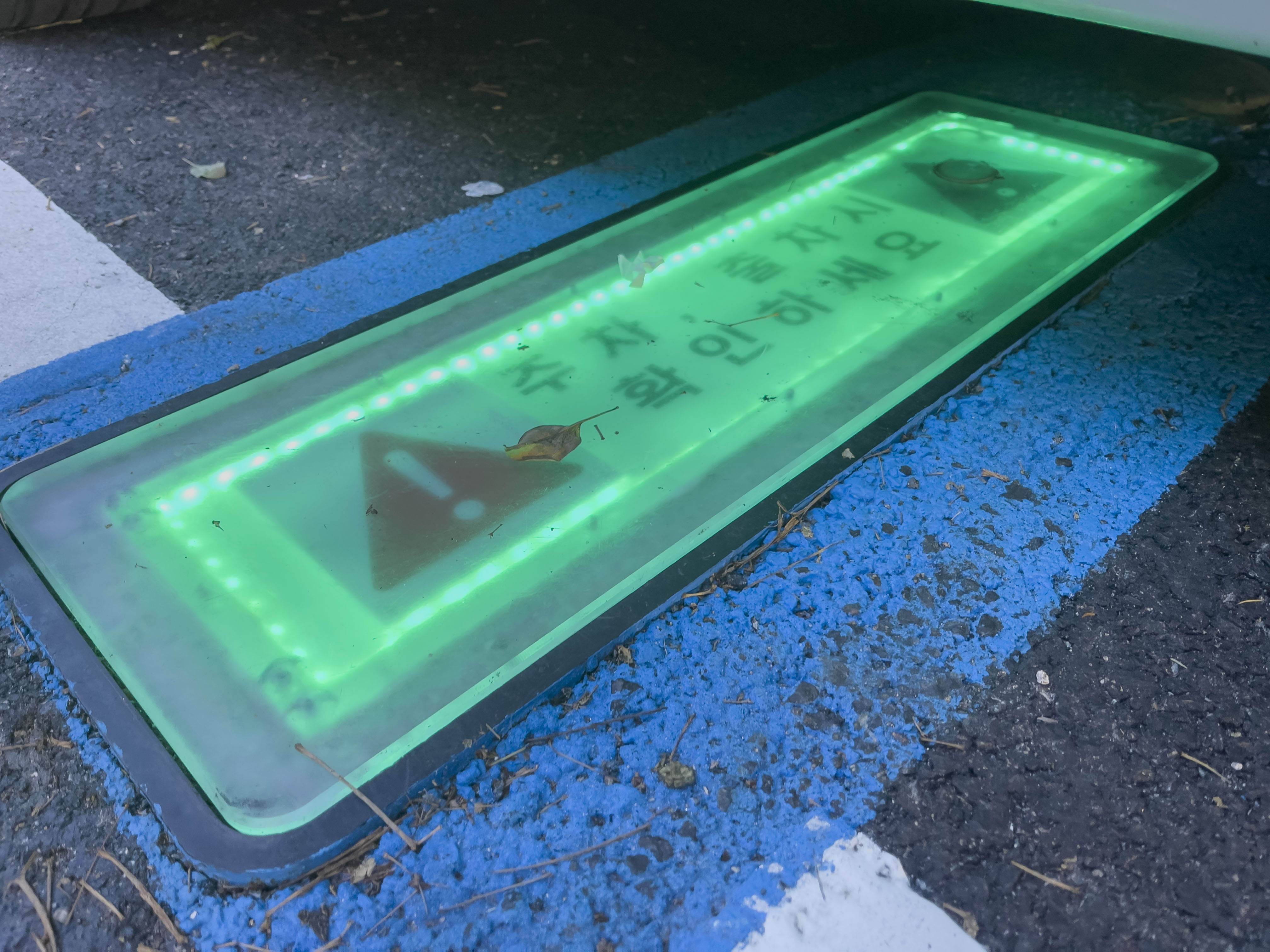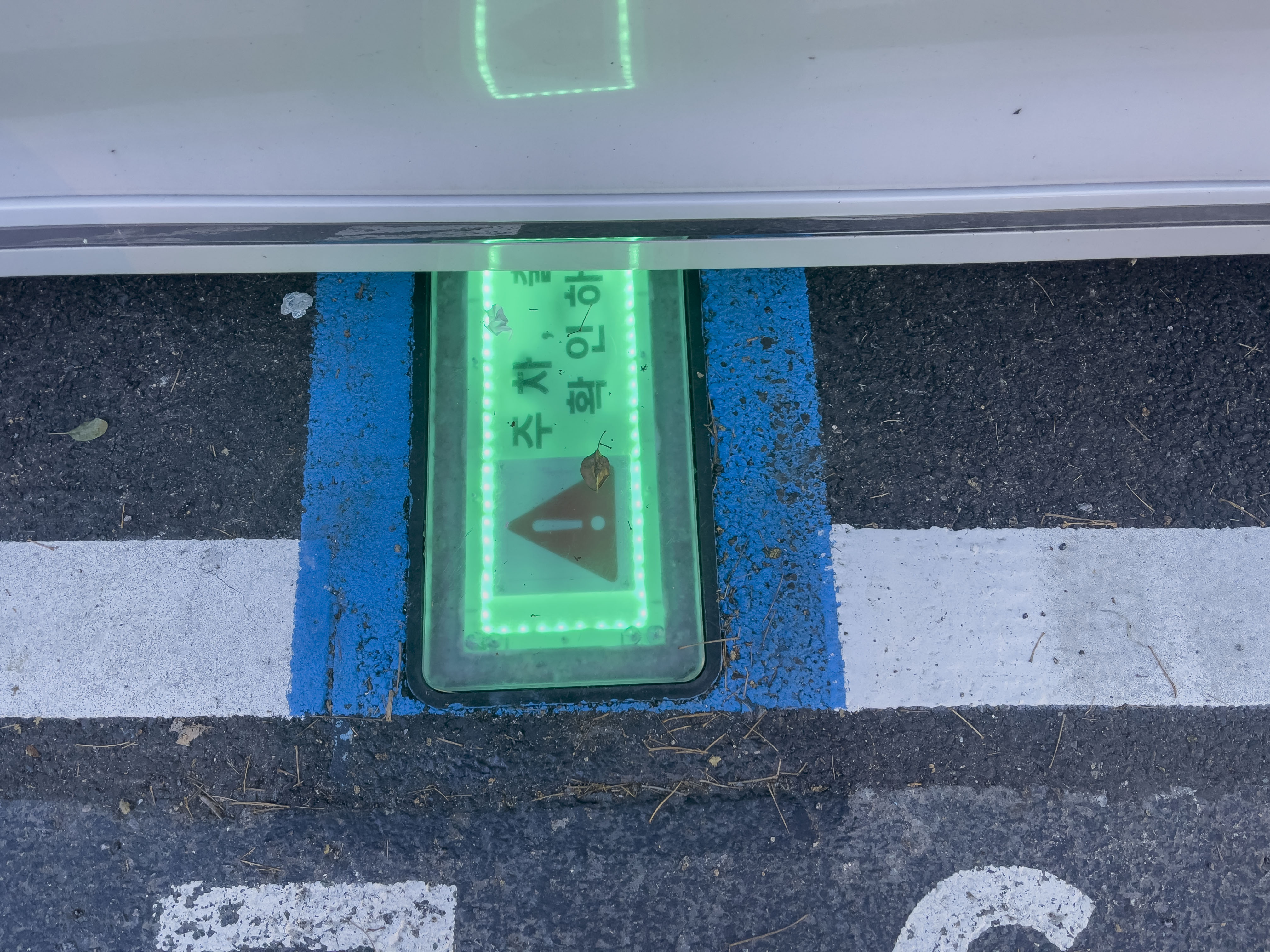 출차시에는 주차요금을 결제하면 바닥제어장치가 내려가며 녹색 LED가 점등이 됩니다.