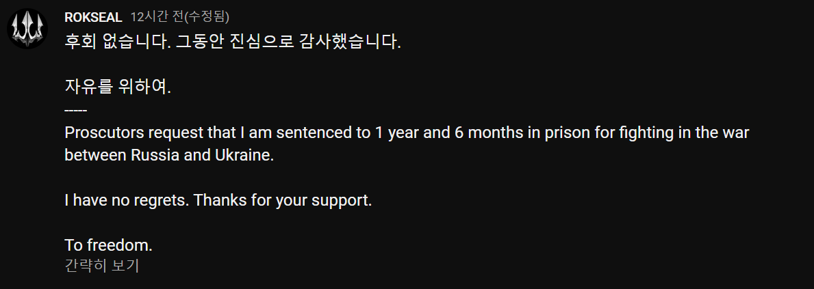 하지만... 재판 후 이근은 "후회 없습니다. 그동안 진심으로 감사했습니다. 자유를 위하여" 라고 하며 구속이 될것을 예감이라도 한듯 글을 올렸습니다.