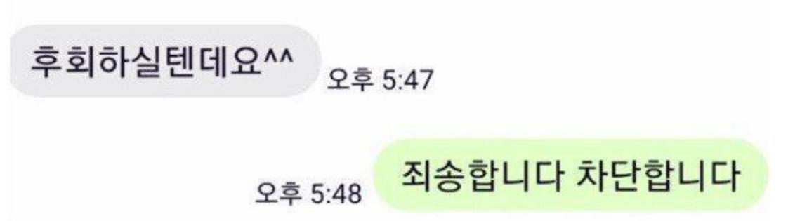 그러나, 매장 소유주는 다시 한 번 거절하며, "죄송합니다."라는 말로 답했습니다. 이에 소비자는 "후회하실텐데요^^"라는 메시지를 남긴 후, 대화가 끝났습니다.