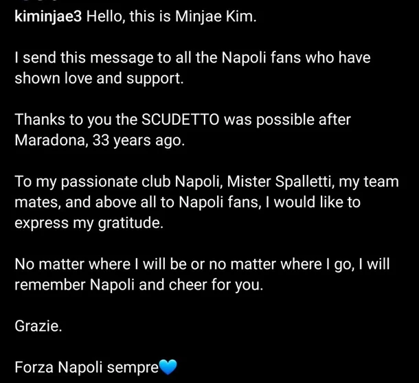6월 중순부터 기초 군사 훈련을 받았던 김민재는 7월 초에 퇴소하고, 서울의 한 대형 병원에서 메디컬 테스트를 마쳤었습니다. 이로서 이적설은 마무리되고, 김민재의 뮌헨행이 확정되었습니다. 바이에른 뮌헨은 공식 홈페이지를 통해 김민재의 입단을 공식적으로 발표했습니다.