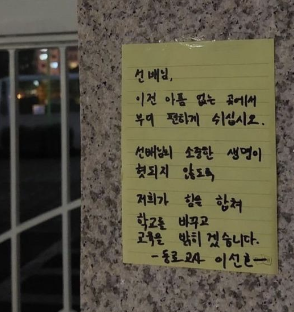 한 교사의 죽음에 우리 모두가 깊은 슬픔을 느끼고 있습니다. 그 교사가 만나야 했던 아이들, 그리고 그 아이들의 가족들에게도 깊은 애도를 표합니다.