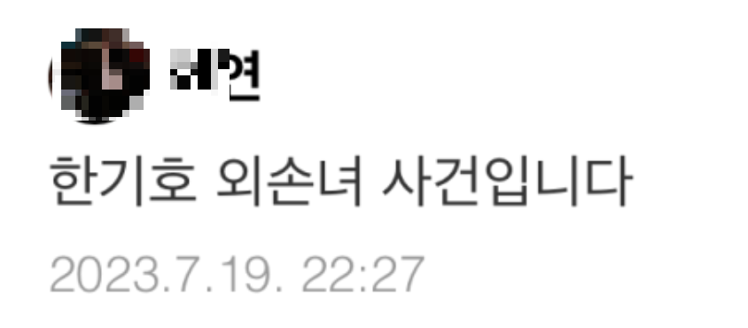 아들은 미혼이라고 하고 외손녀라고 언급이 나와있는것 보면 카더라 뉴스로 한기호의원의 이름이 거론된것이 아닐까 조심스럽게 추측을 해봅니다.