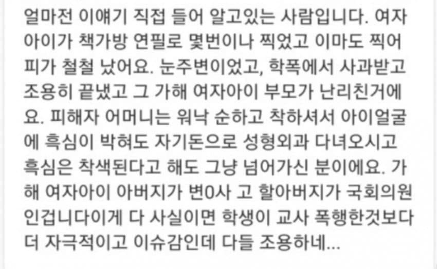 서이초 학폭 사건, 가해학생의 부모는 변호샤? 할아버지는 국회의원? - KEKEWO