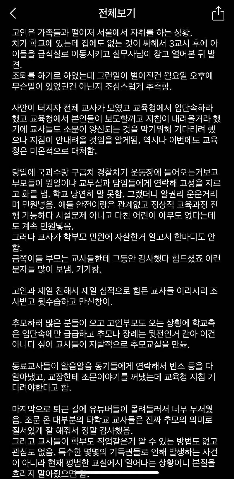 새로운 내용도 올라왔습니다. 서이초 여교사는 학생이 연필로 선생을 내려 찍은 사건이 있었다고 합니다.