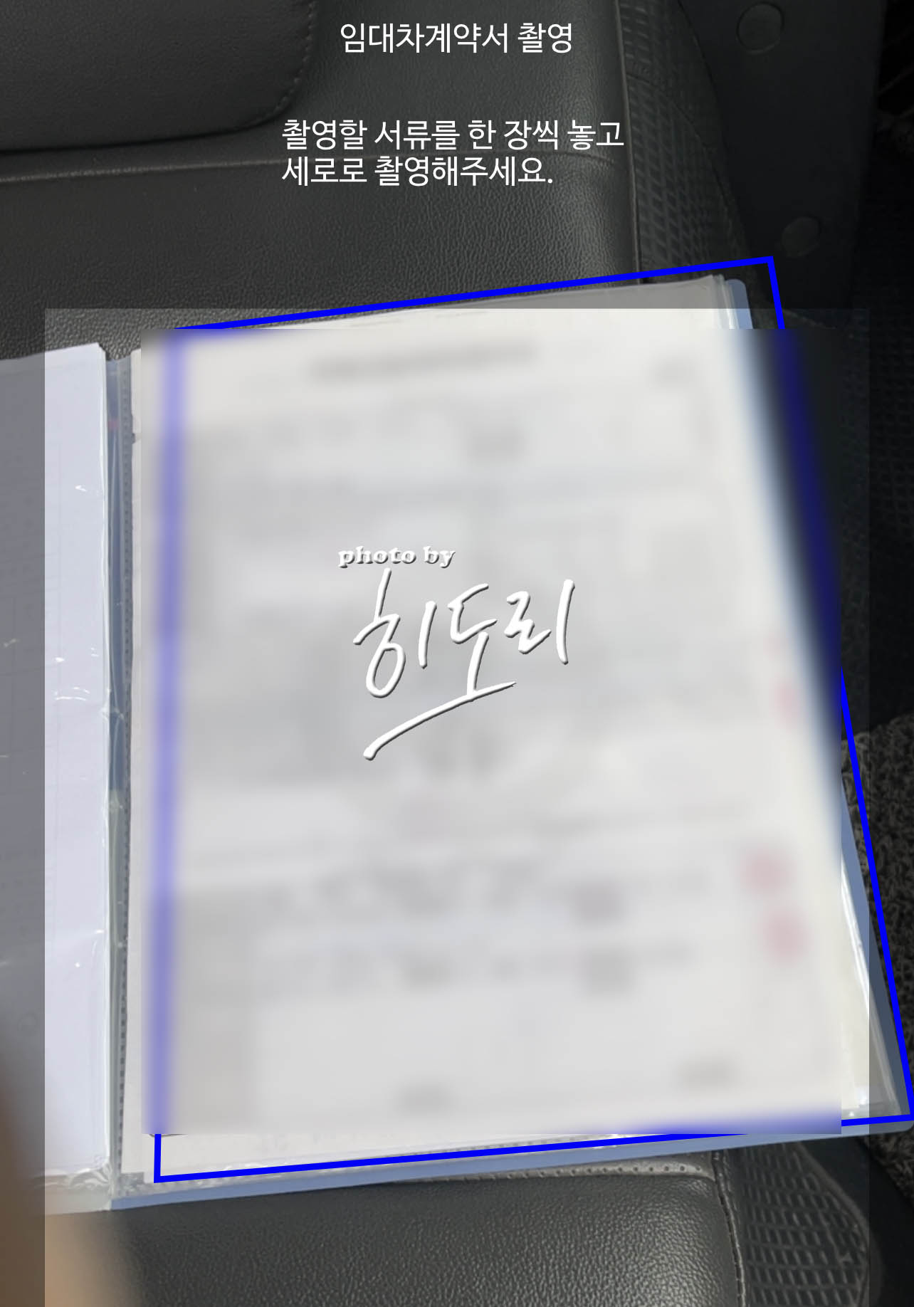 촬영은 자동으로 카메라가 켜지며 선에 맞게 계약서를 찍으시면 끝!