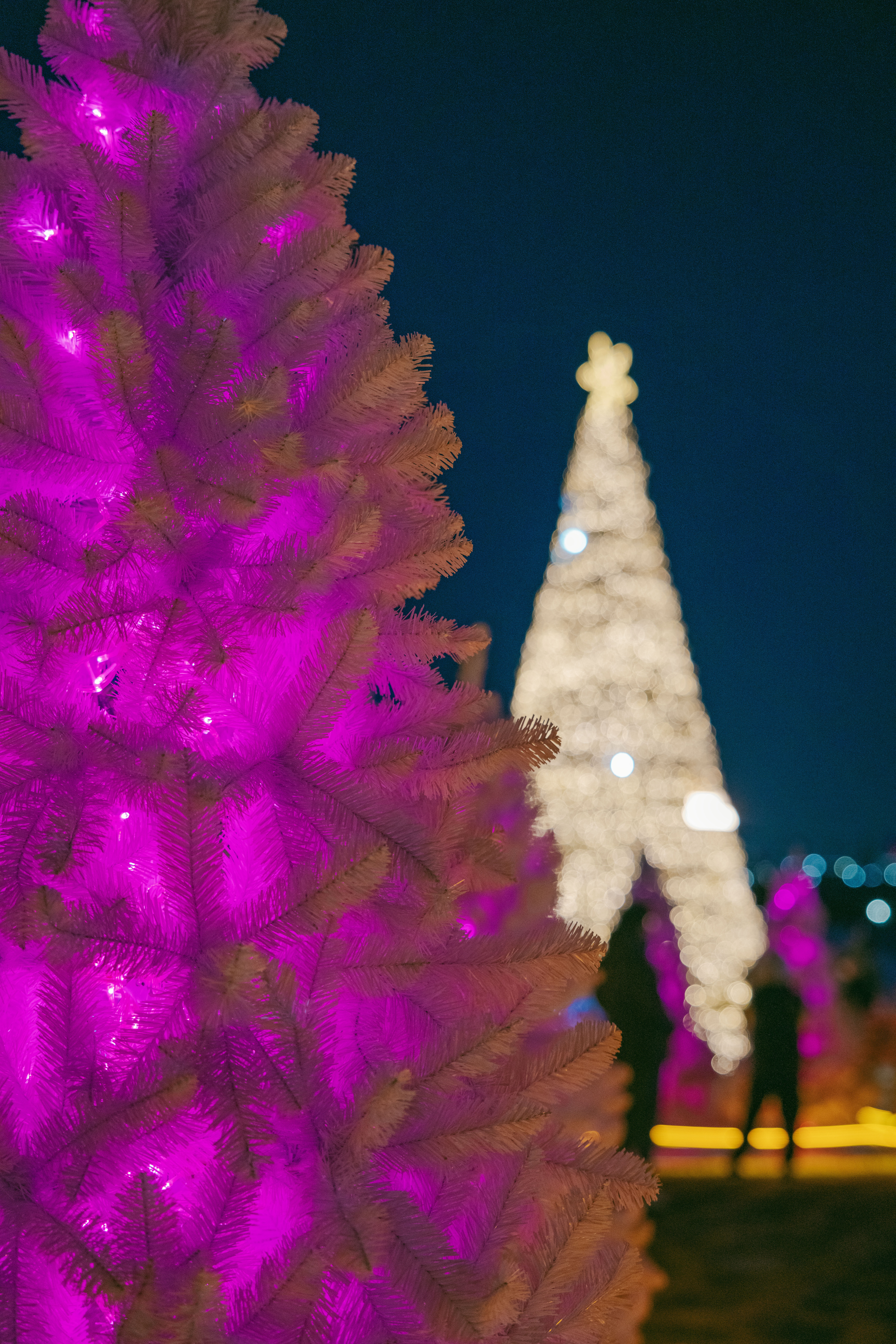 조명 덕분에 트리들이 핑크빛으로 물들어서 분위기가 미쳤습니다.