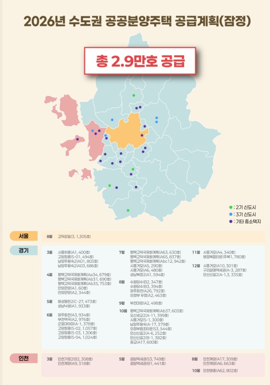 🏘️ 1. 내년 수도권 공공분양 총 2만 9000호 공급