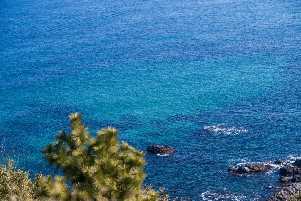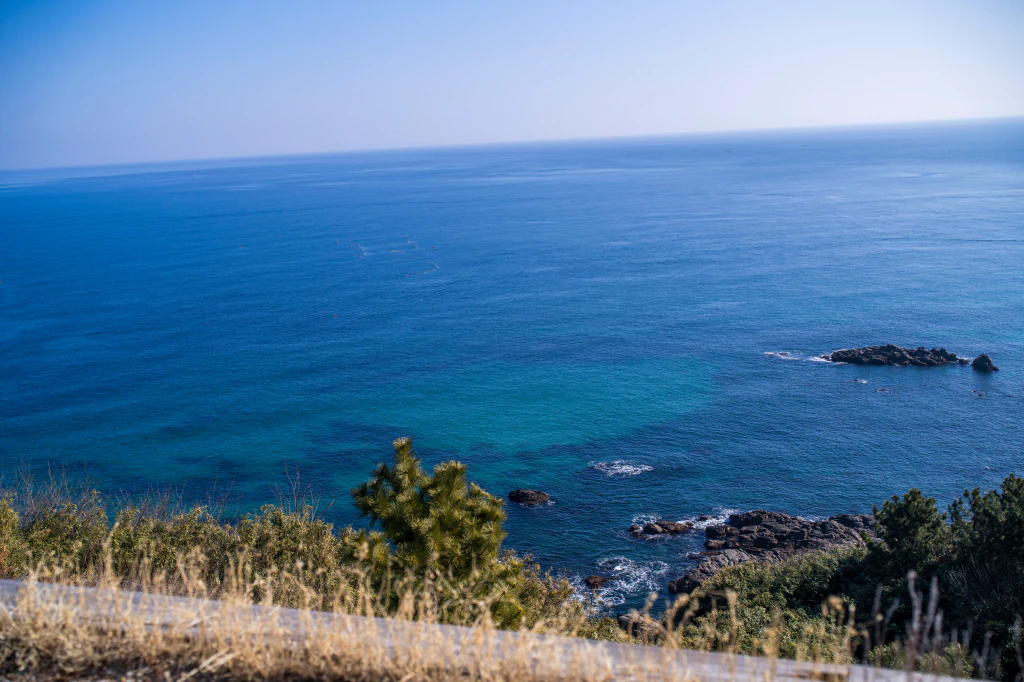 투명한 푸른빛의 동해바다가 수평선 끝까지 펼쳐지며