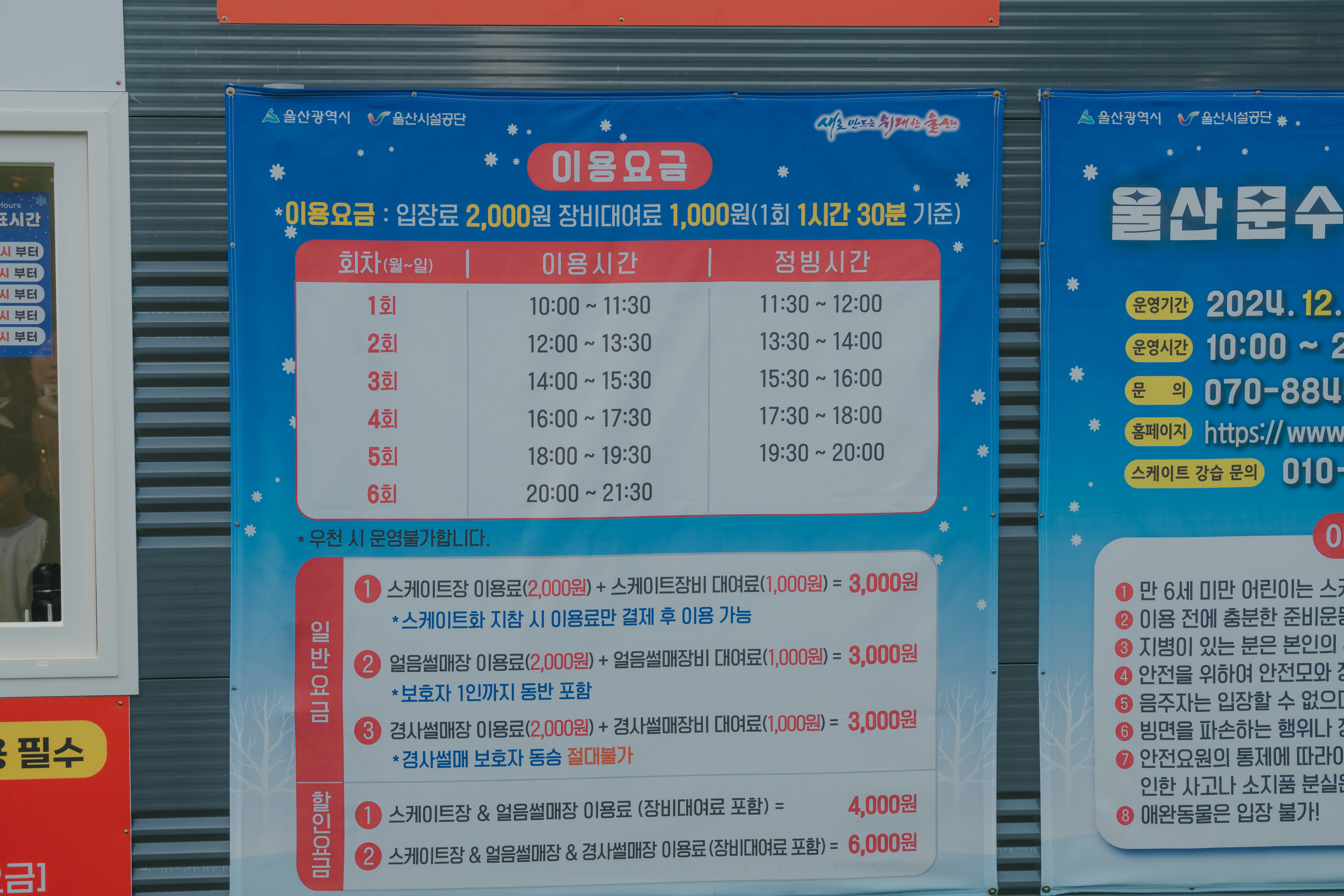 문수 꿀잼빙상장은 회차별 입장 방식으로 운영됩니다.