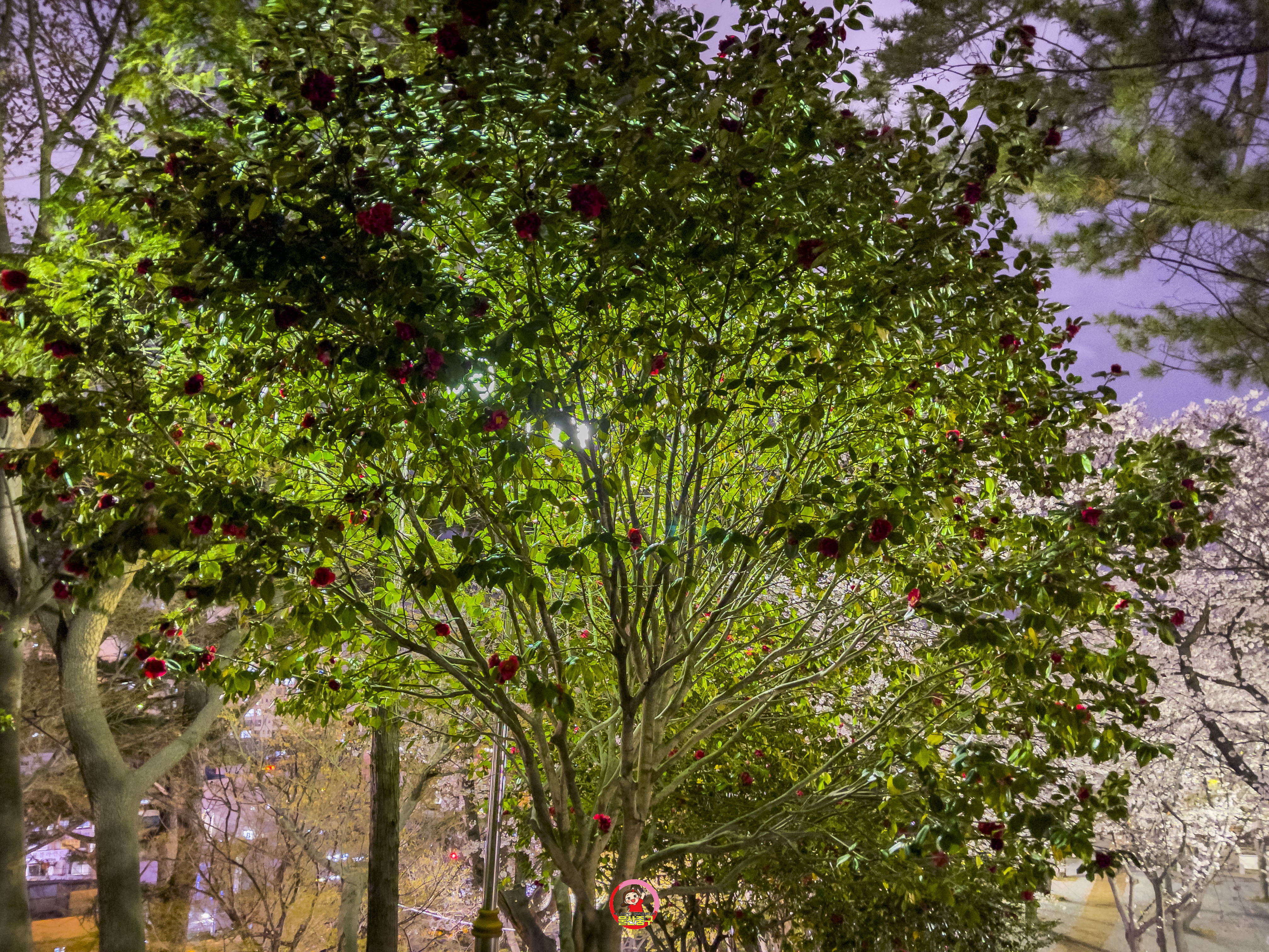 특히 붉은빛 조명 + 하얀 벚꽃 조합은