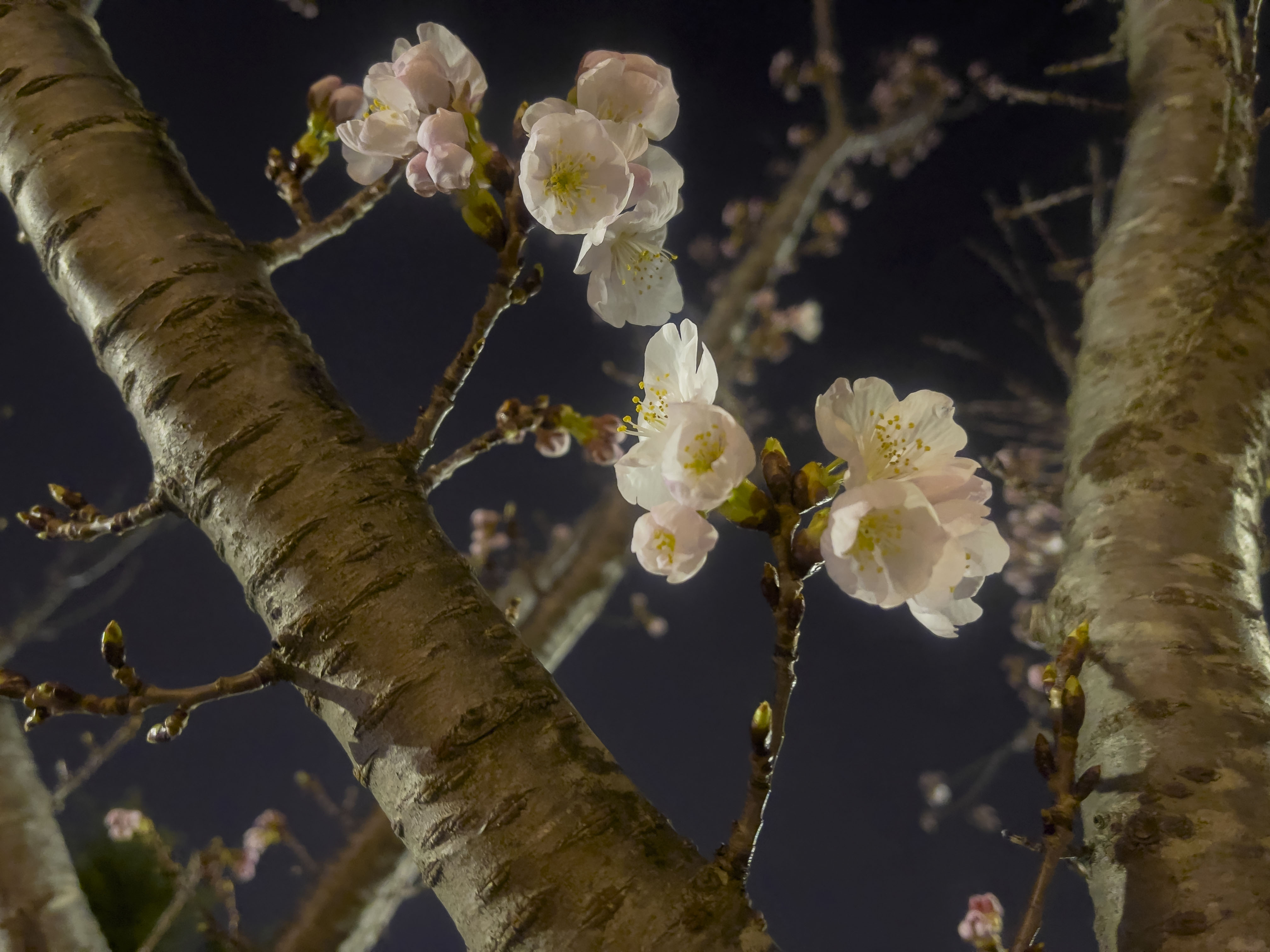 가로등 불빛이 벚꽃 사이로 스며들면서
