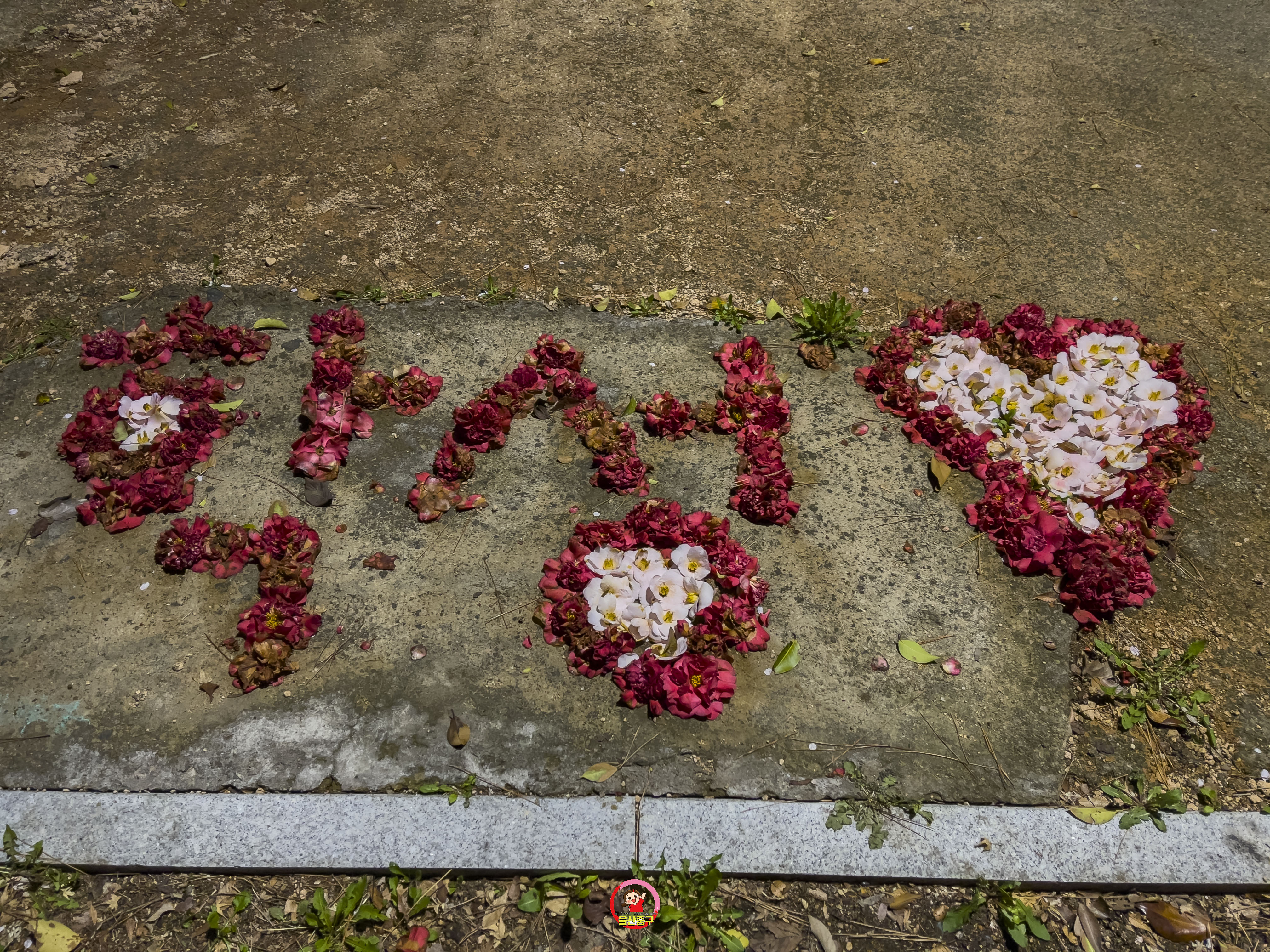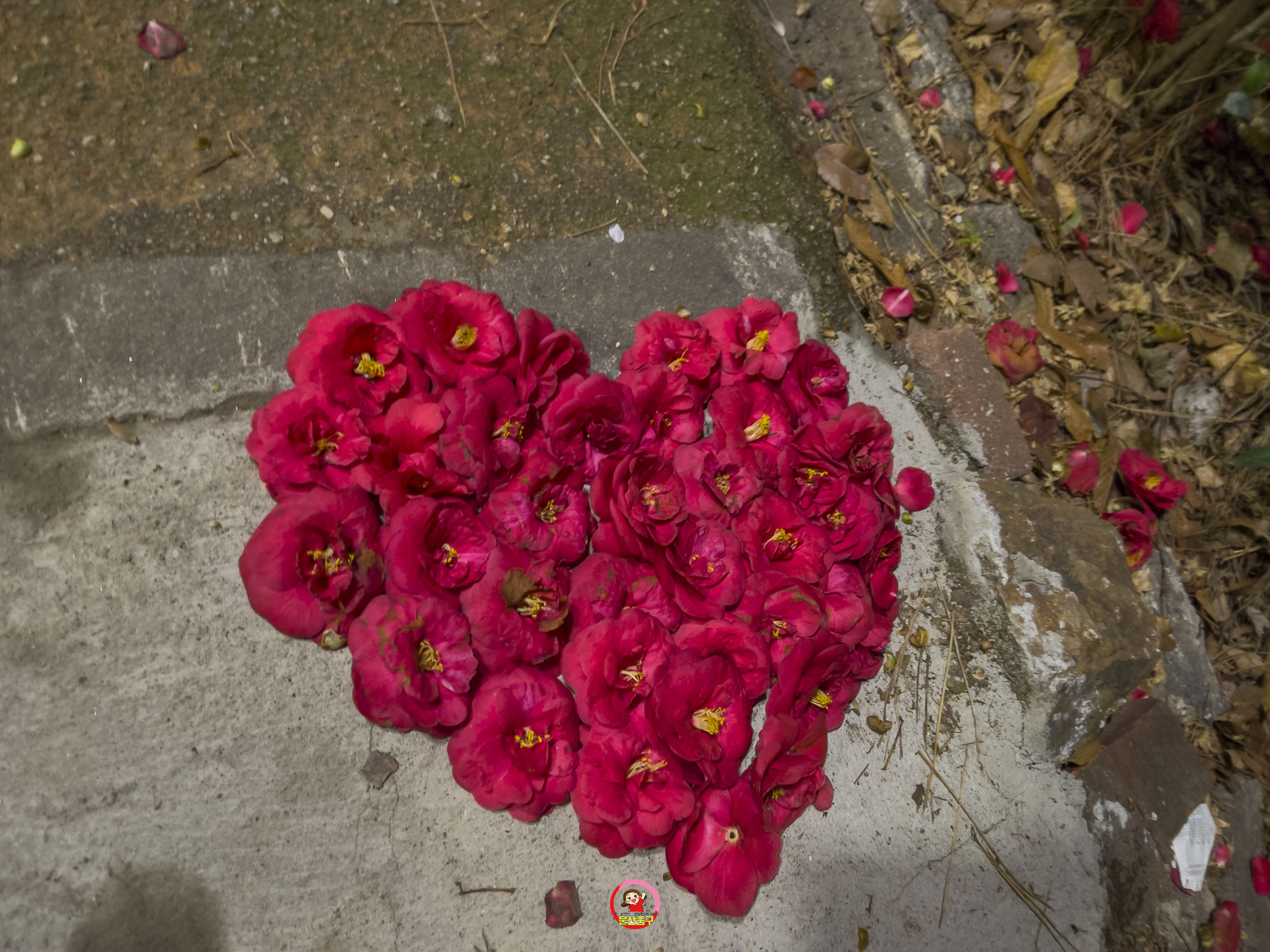 환경미화로 만든 동백꽃 작품들도 있어서