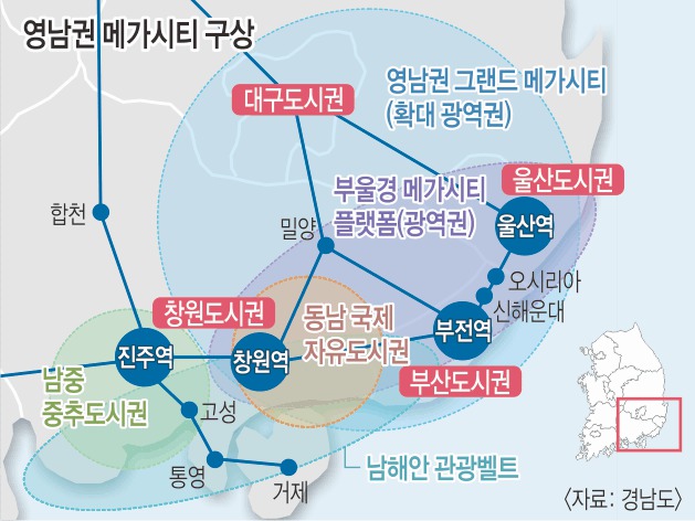 한때 큰 기대를 모았던 부울경 메가시티 프로젝트가 무산되자, 부산에서는 울산과 경남이 왜 부산 중심으로 뭉치지 못하냐는 비판의 목소리가 나오고 있습니다. 그러나 이런 비판보다는 부산 중심으로 뭉쳐달라고 설득하고 호소하는 자세가 필요하지 않을까요?