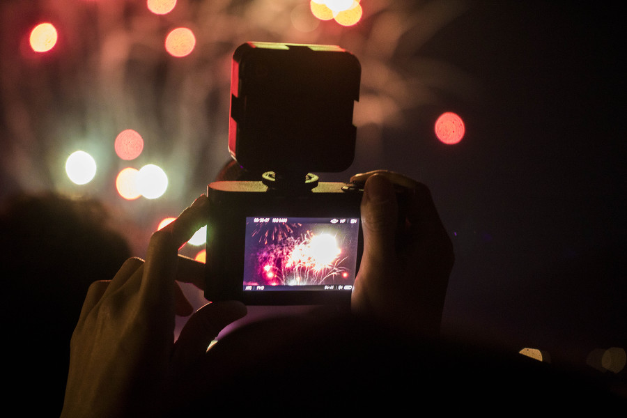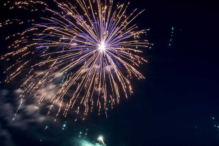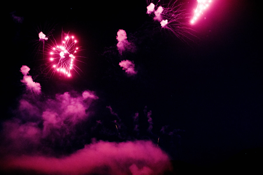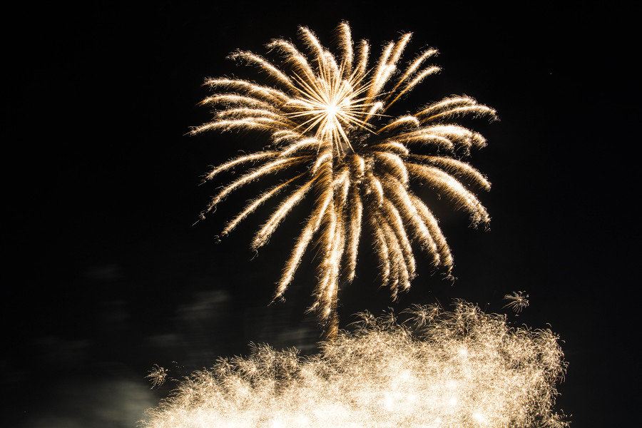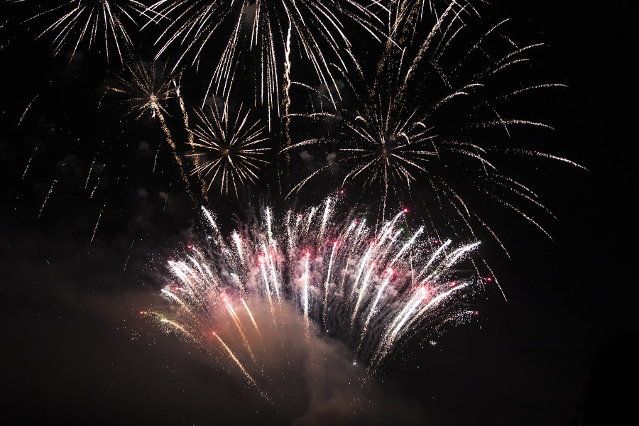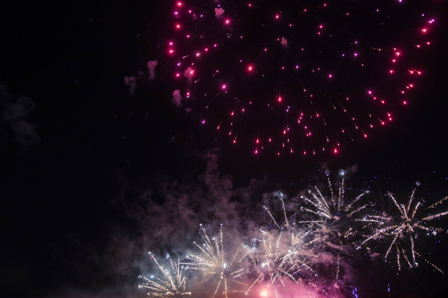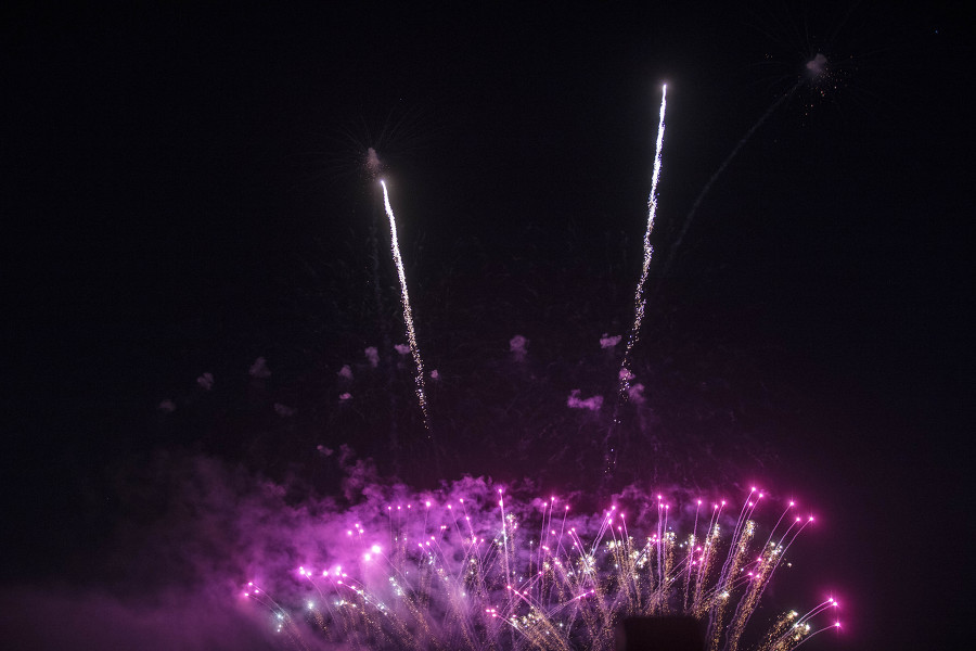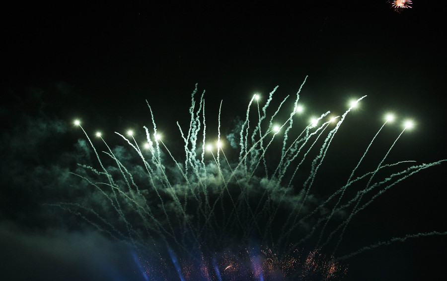 외침과 함께 밤하늘로 쏟아오르는 첫 불꽃—