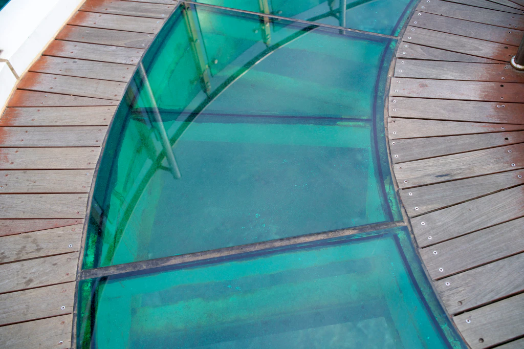 스카이워크는 1층과 2층 구조로 되어 있는데, 2층에서는 시야가 훨씬 넓어져요. 바닥 일부가 투명한 구조라 발아래로 바다가 보이는 순간, 사진으로만 보던 짜릿함을 직접 느낄 수 있습니다.