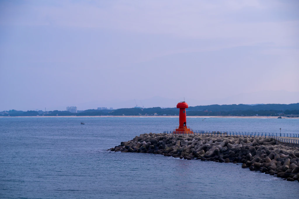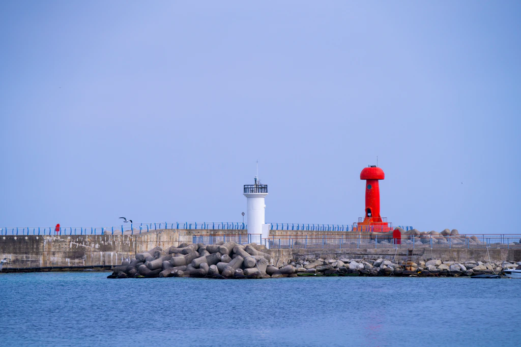 약 4초 주기로 깜빡이는 붉은 불빛이 항구를 지켜주는 모습은, 여행의 마무리를 차분하게 만들어줘요.