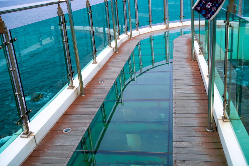 스카이워크는 1층과 2층 구조로 되어 있는데, 2층에서는 시야가 훨씬 넓어져요. 바닥 일부가 투명한 구조라 발아래로 바다가 보이는 순간, 사진으로만 보던 짜릿함을 직접 느낄 수 있습니다.
