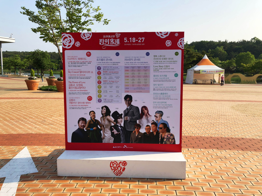 정문 입구 맞은편에는 곧 열릴 장미축제 포스터가 전시되어 있었습니다. 이번 달 울산에는 정말 놀러 다닐 곳이 많습니다.