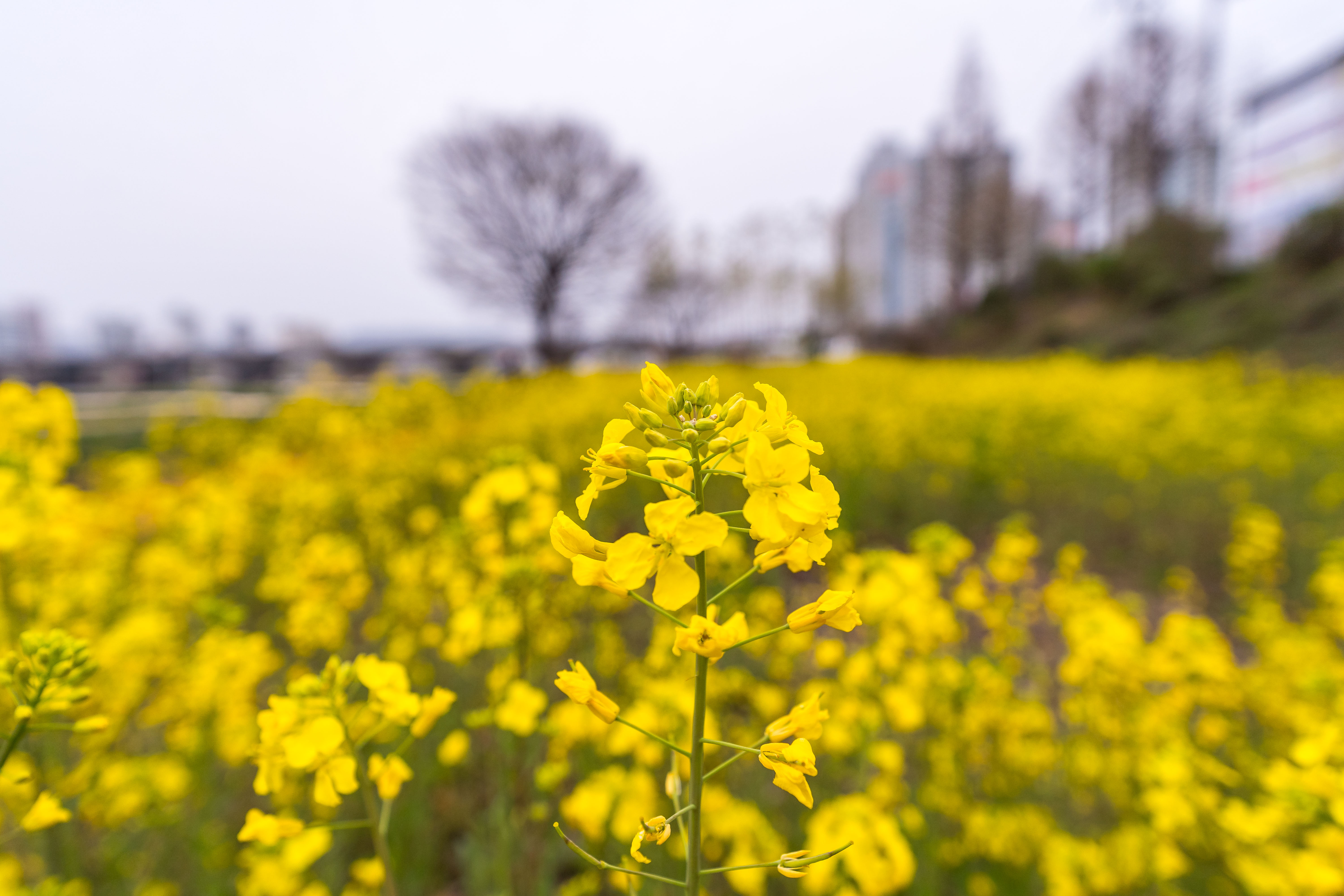이른 아침이나 해질 무렵에 방문하시면 빛이 더 황금빛으로 변해서, 갓꽃의 노란색이 한층 더 따뜻하고 아름답게 사진에 담겨요. 가능하다면 꼭 골든아워에 도전해보세요 🌅