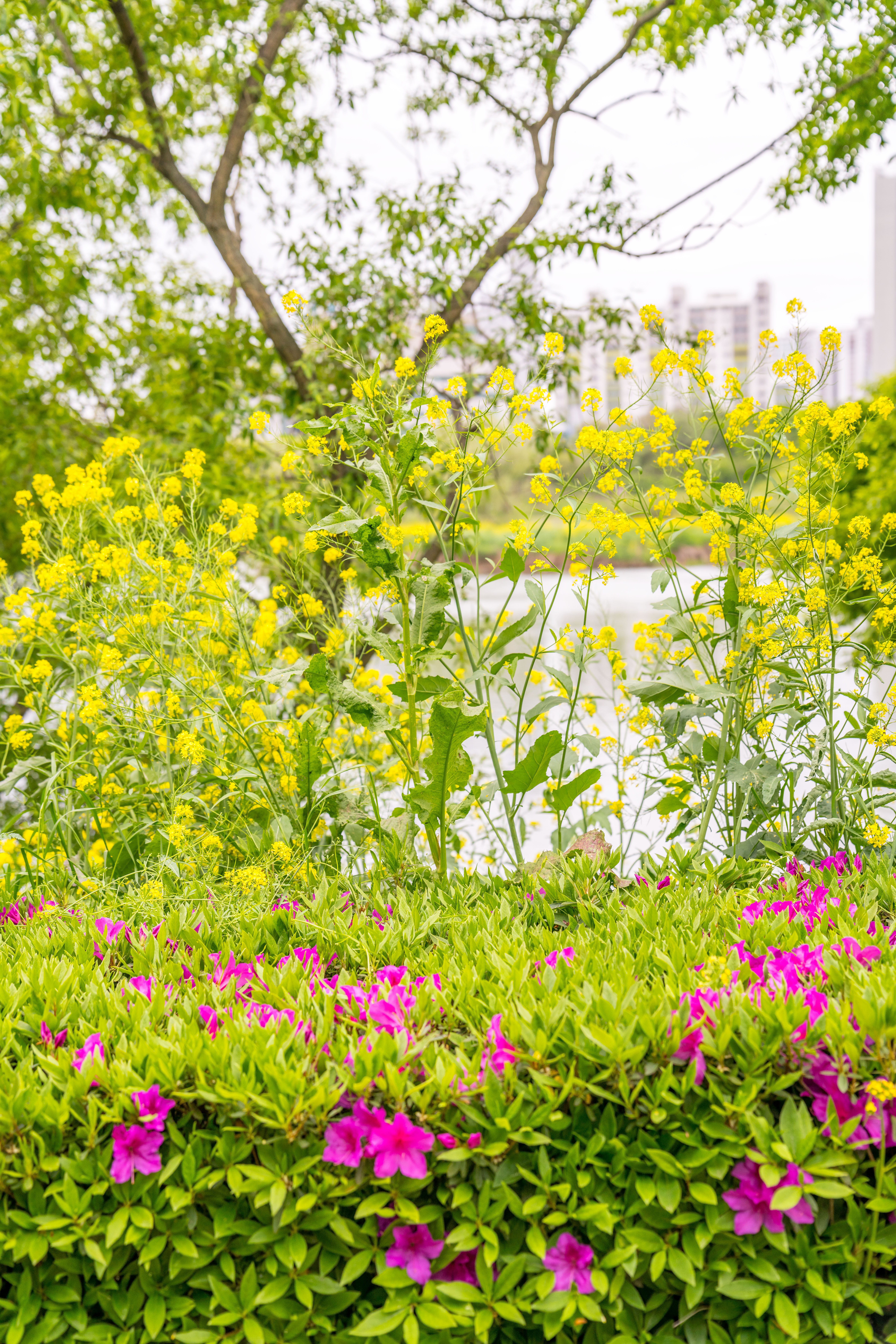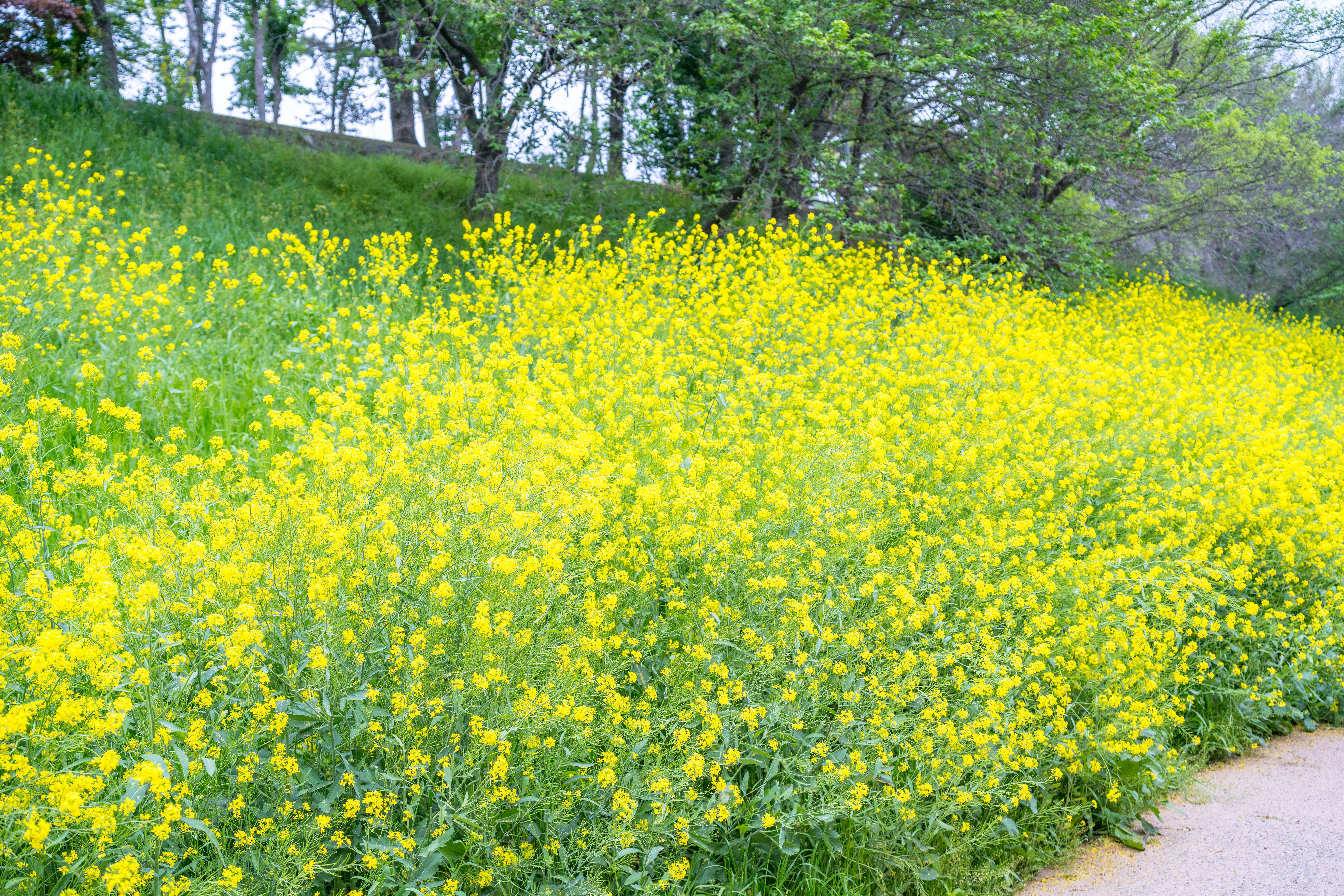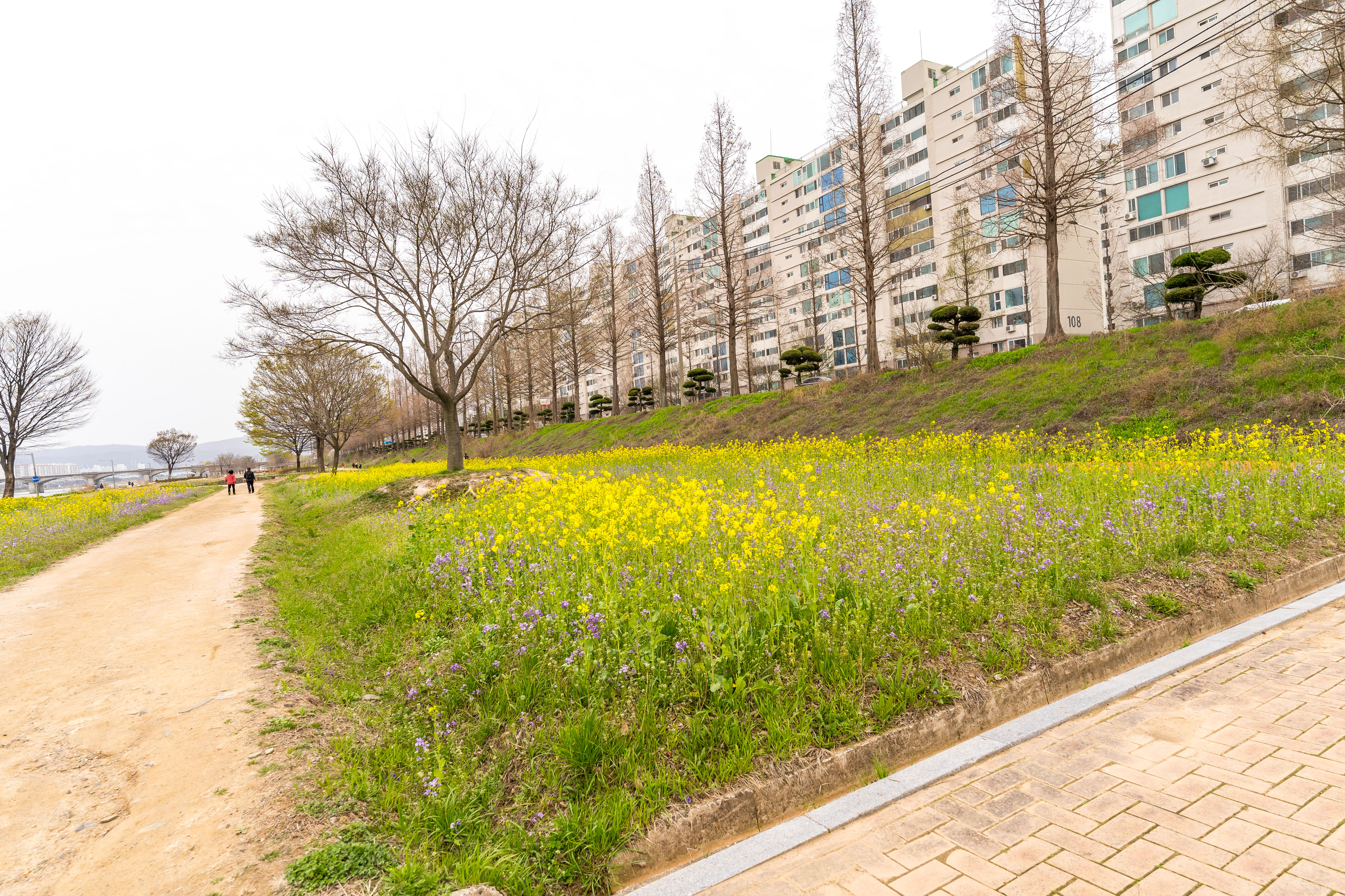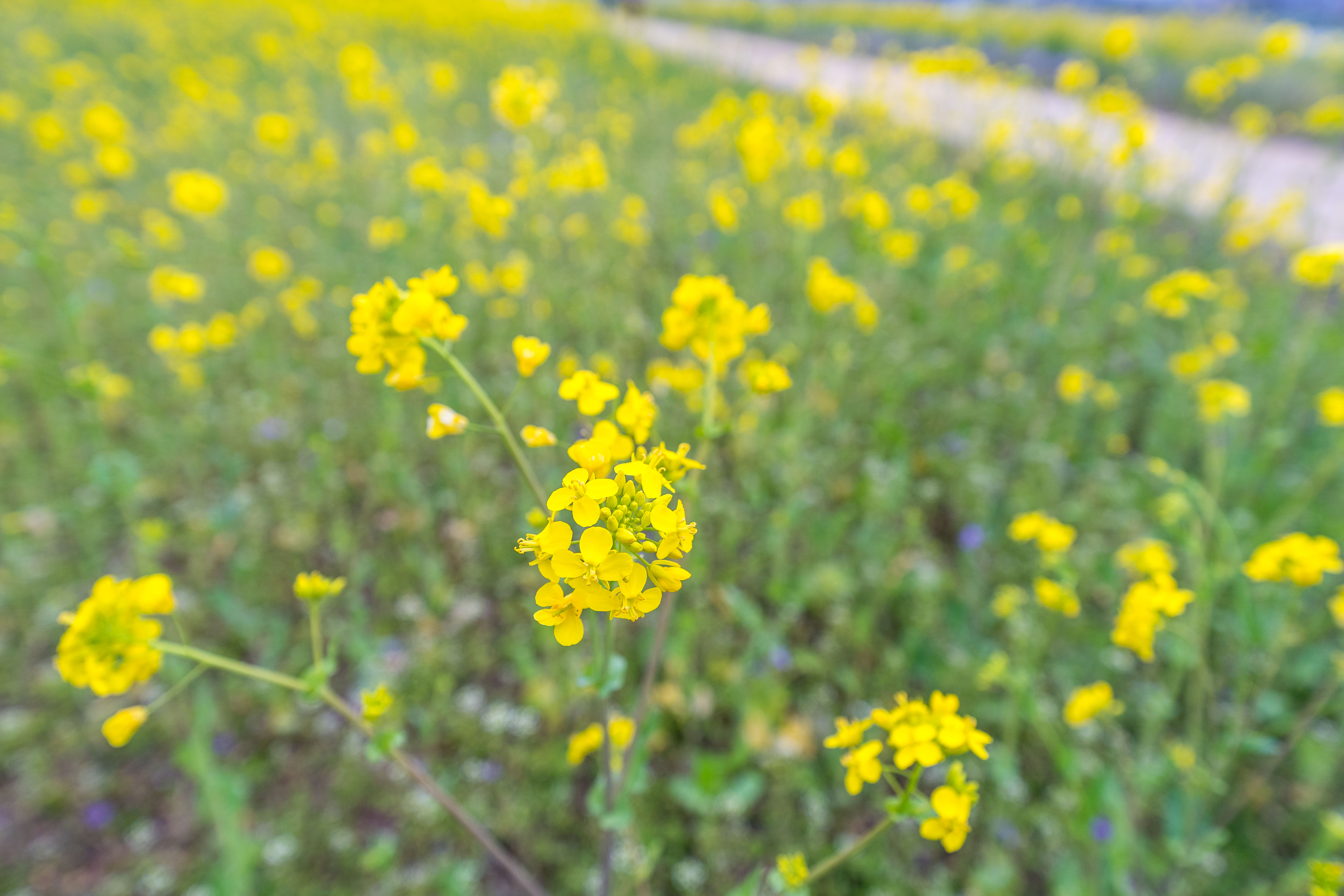 산책로를 따라 걷다 보면 갓꽃 군락지 사이사이로 다른 봄꽃들도 얼굴을 내밀고 있어서, 걷는 내내 시야가 풍성하고 화사해요. 노란 갓꽃을 배경으로 봄꽃들이 여기저기 피어있는 풍경은 그냥 스쳐 지나치기엔 너무 아까운 장면들이에요.