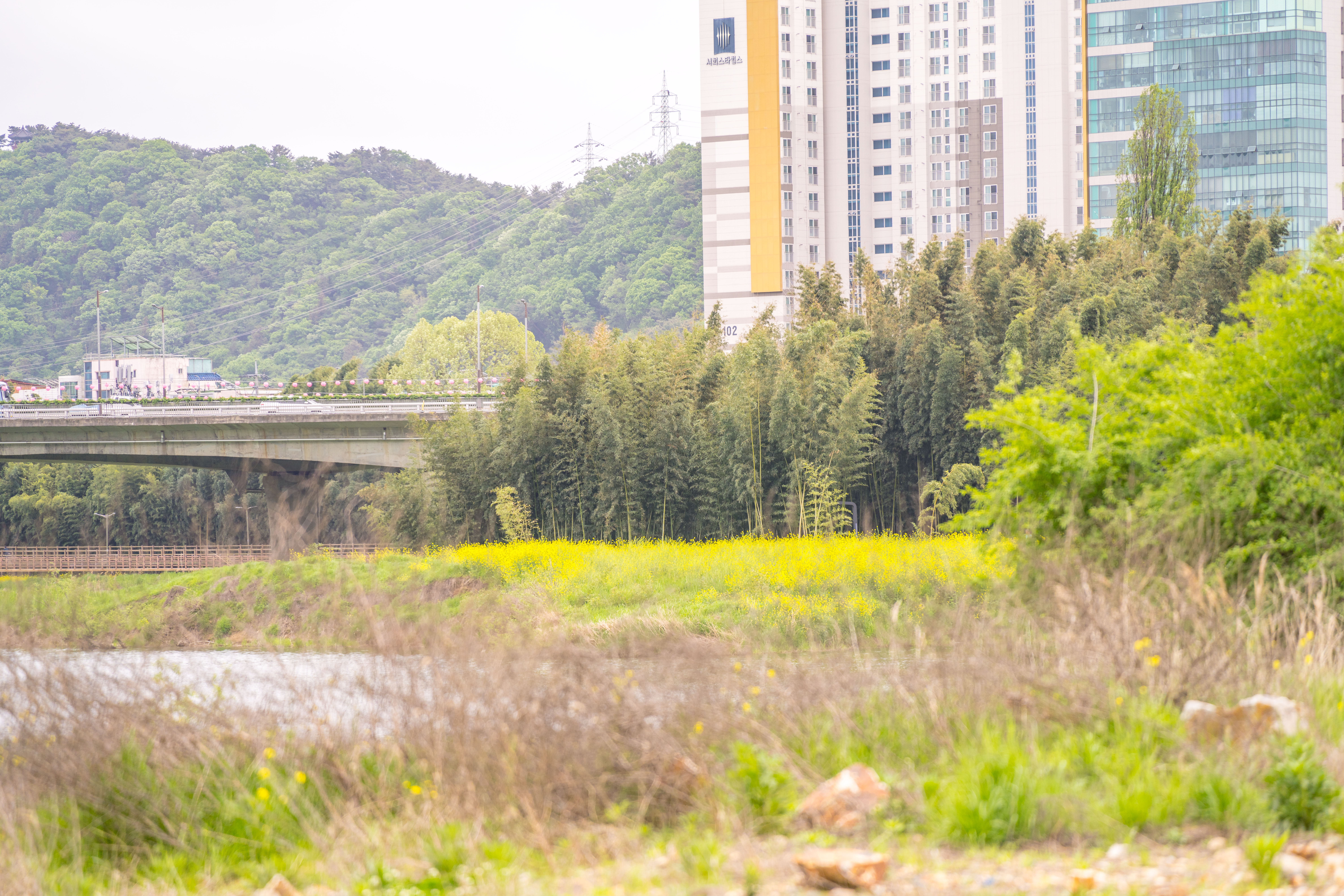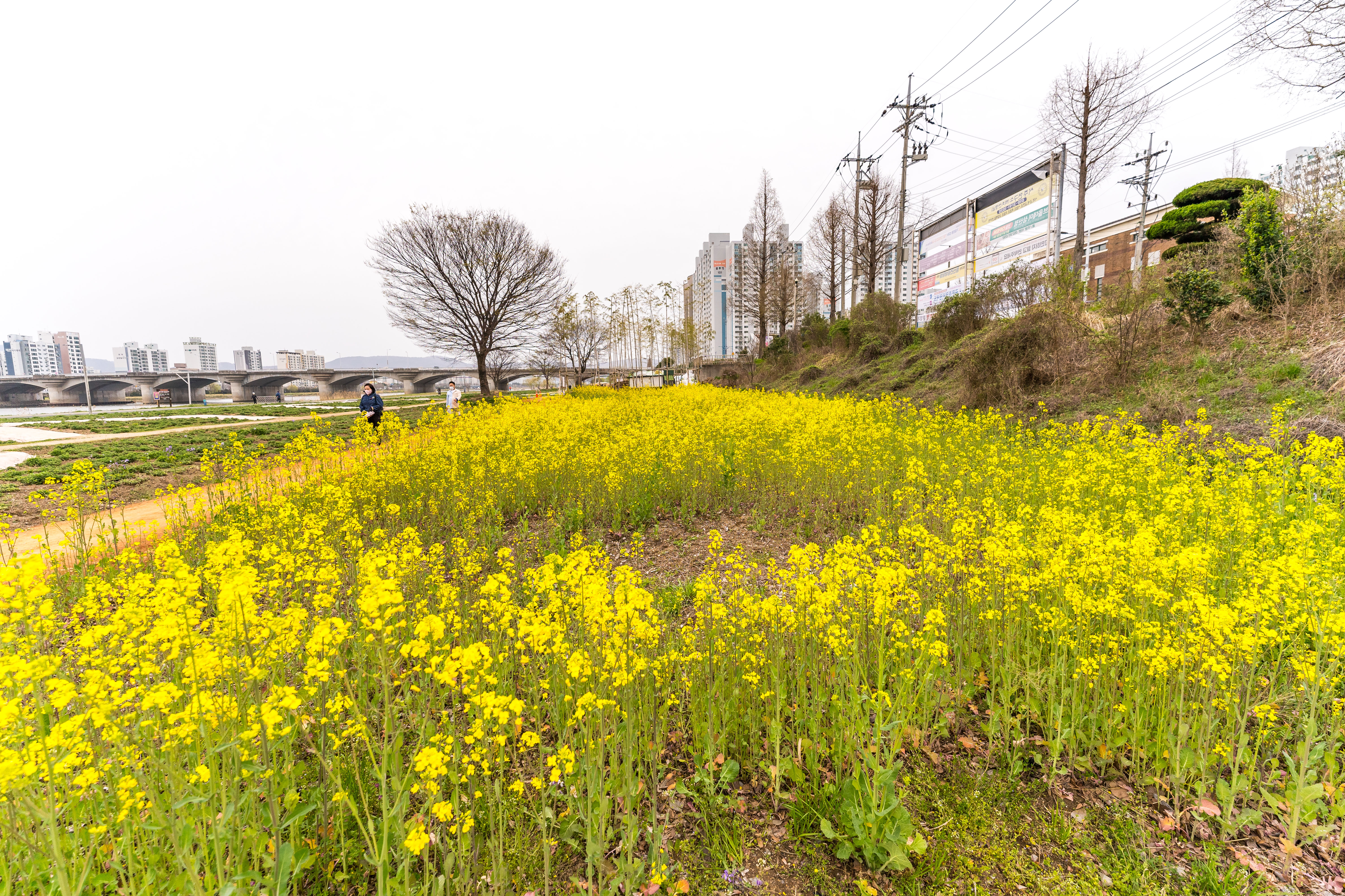 또 태화강을 배경으로 갓꽃밭이 함께 담기는 구도도 추천드려요. 노란 꽃과 반짝이는 강물이 한 프레임 안에 들어오는 사진은 정말 그림 같아서, 따로 편집을 하지 않아도 충분히 예쁜 사진이 나온답니다 📷