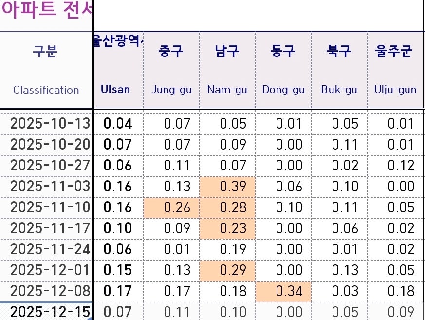- 부동산원 주간 코멘트에서도 울산 남구 언급 빈도 증가