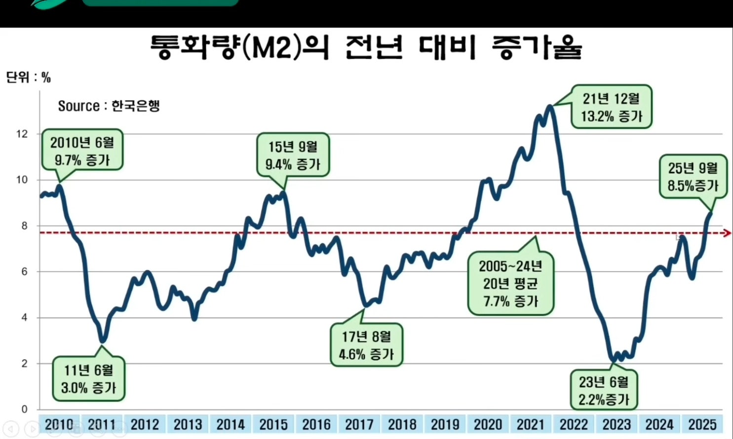 통화량(M2) 증가율 그래프를 보면