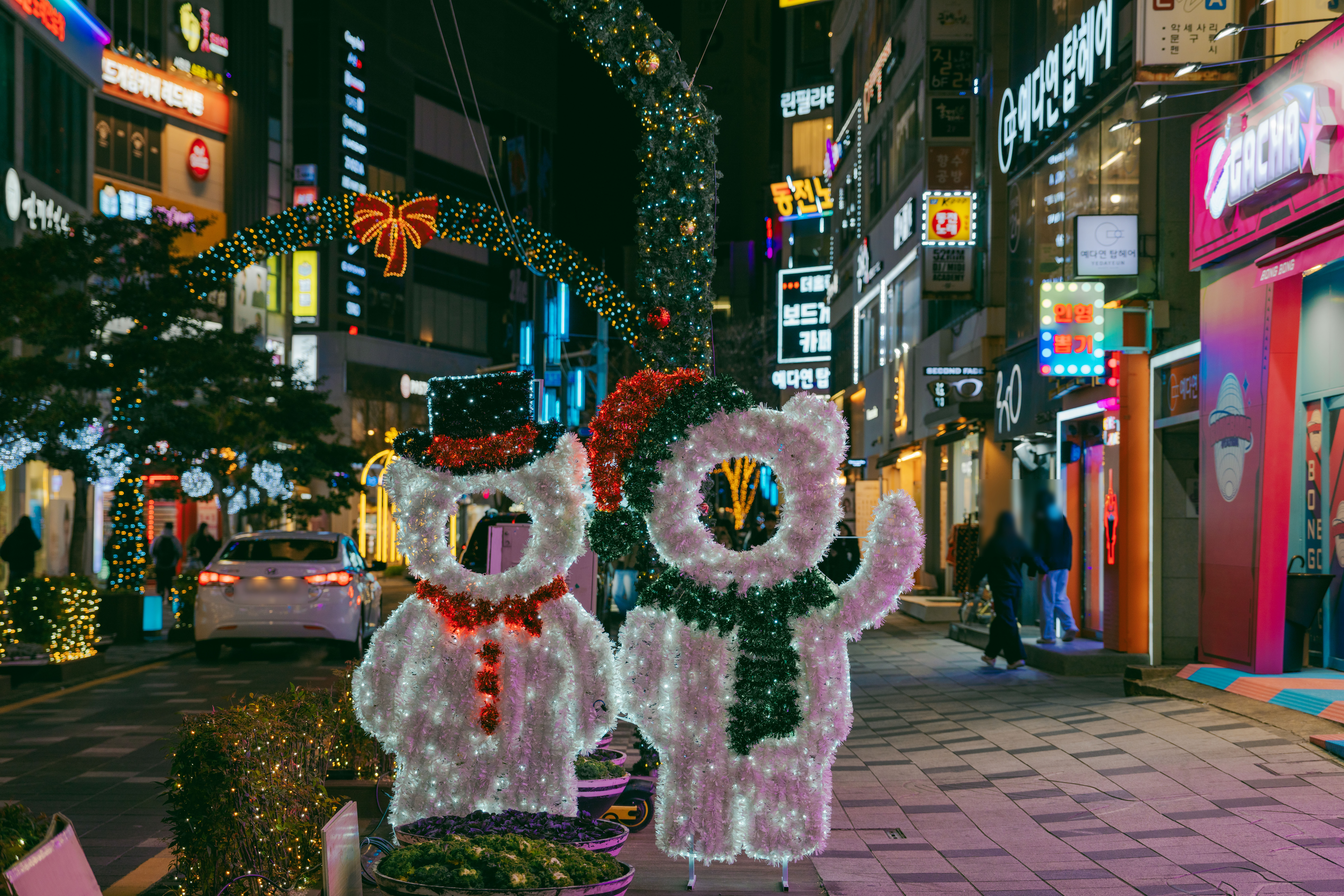 ‘연말과 새해를 함께 준비하는 거리’라는 느낌을 줍니다.