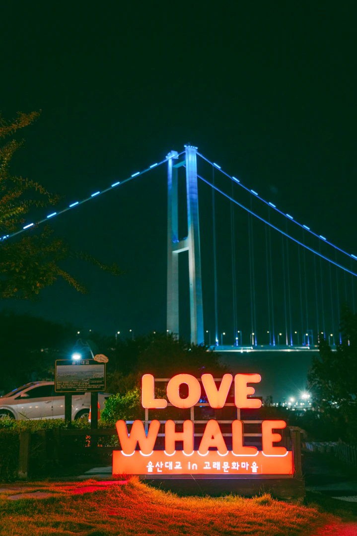 하늘이 어두워지면서 울산대교 조명이 켜지던 딱 좋은 타이밍이었습니다.