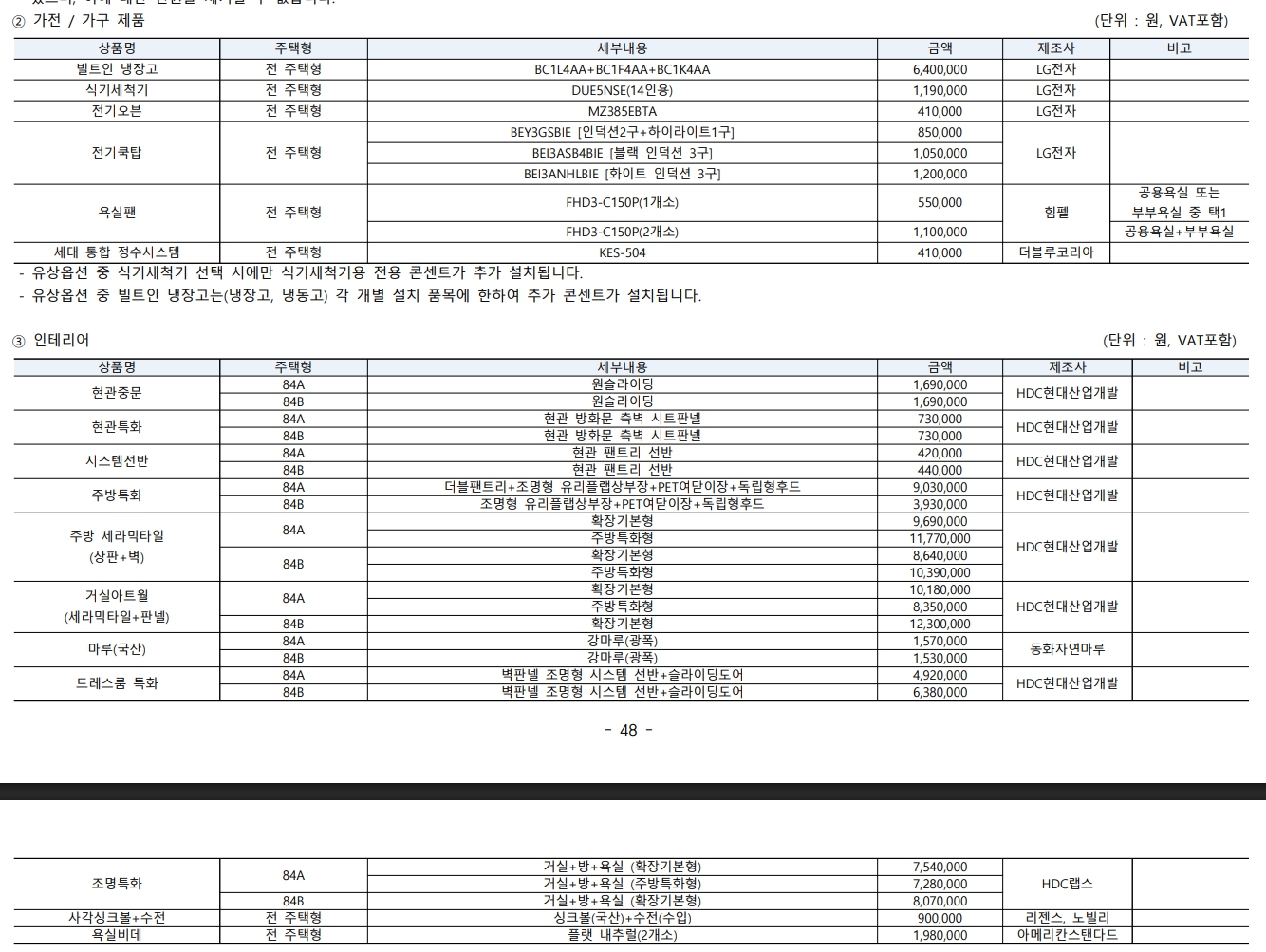 2️⃣ 옵션비 (분양가 ‘별도’)