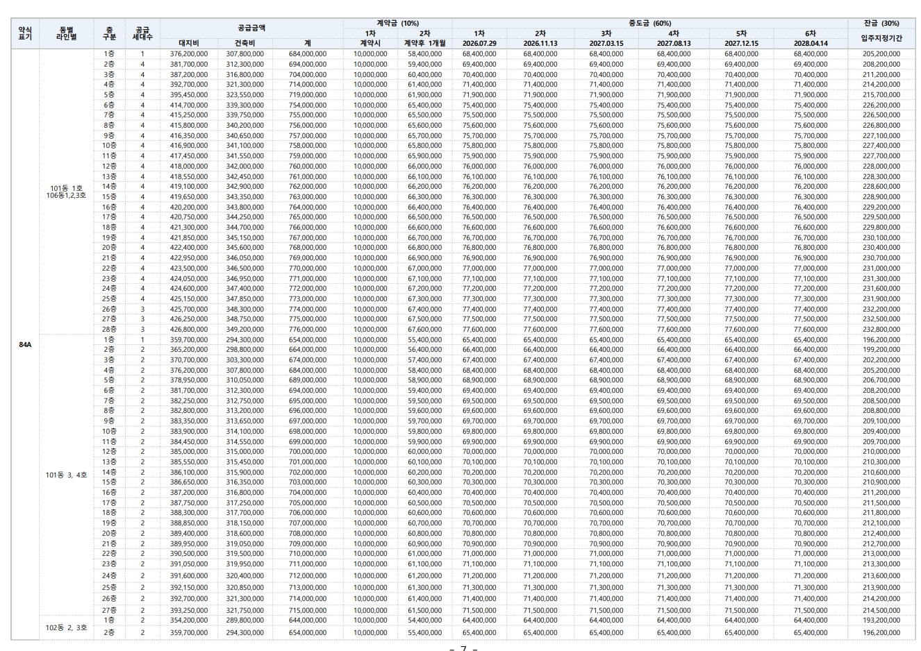 👉 동 / 층 / 태화강 조망 여부에 따라 최대 1.0~1.2억 이상 차이