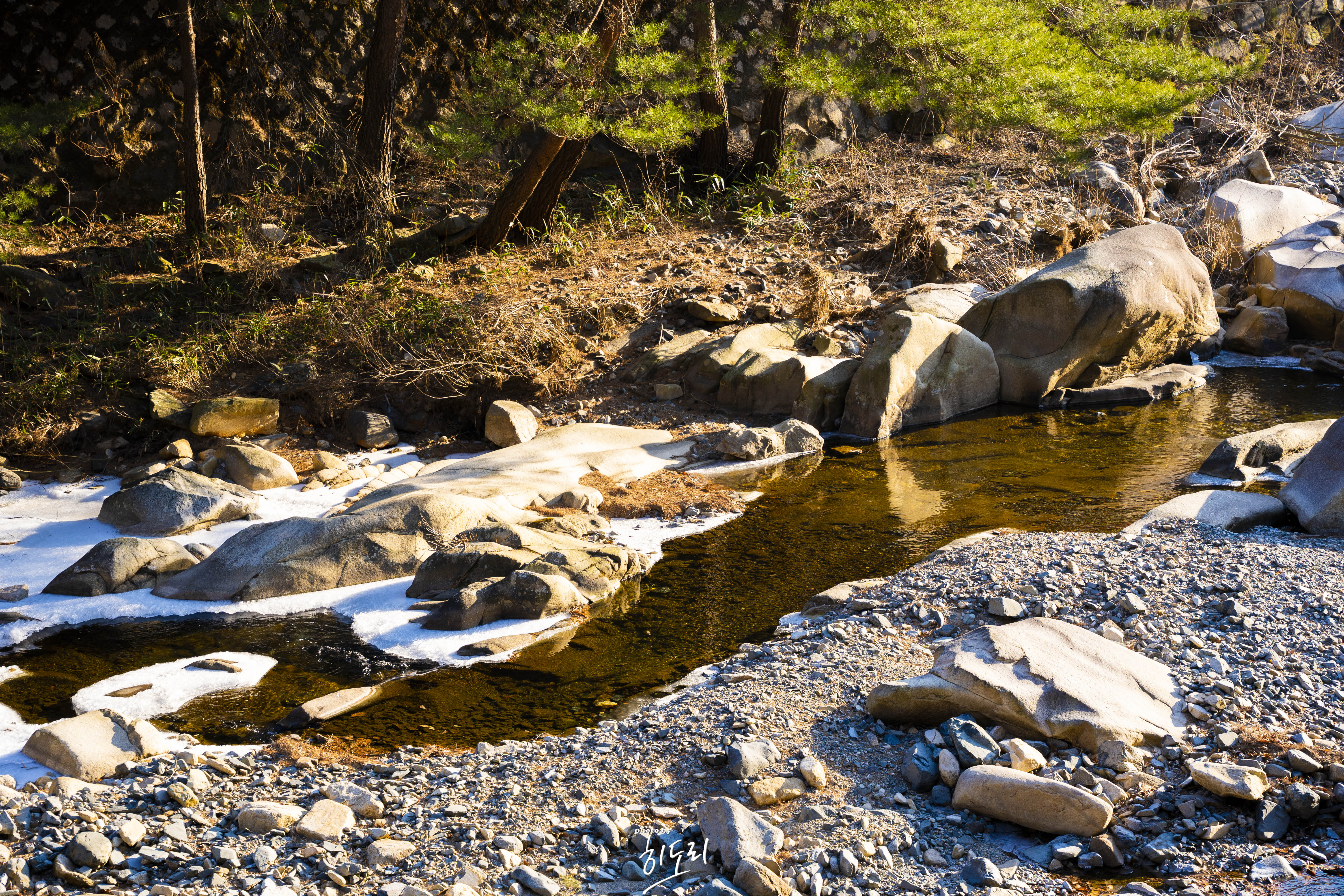 살얼음 낀 계곡과 투명한 물이 묘하게 마음을 맑게 해줍니다.