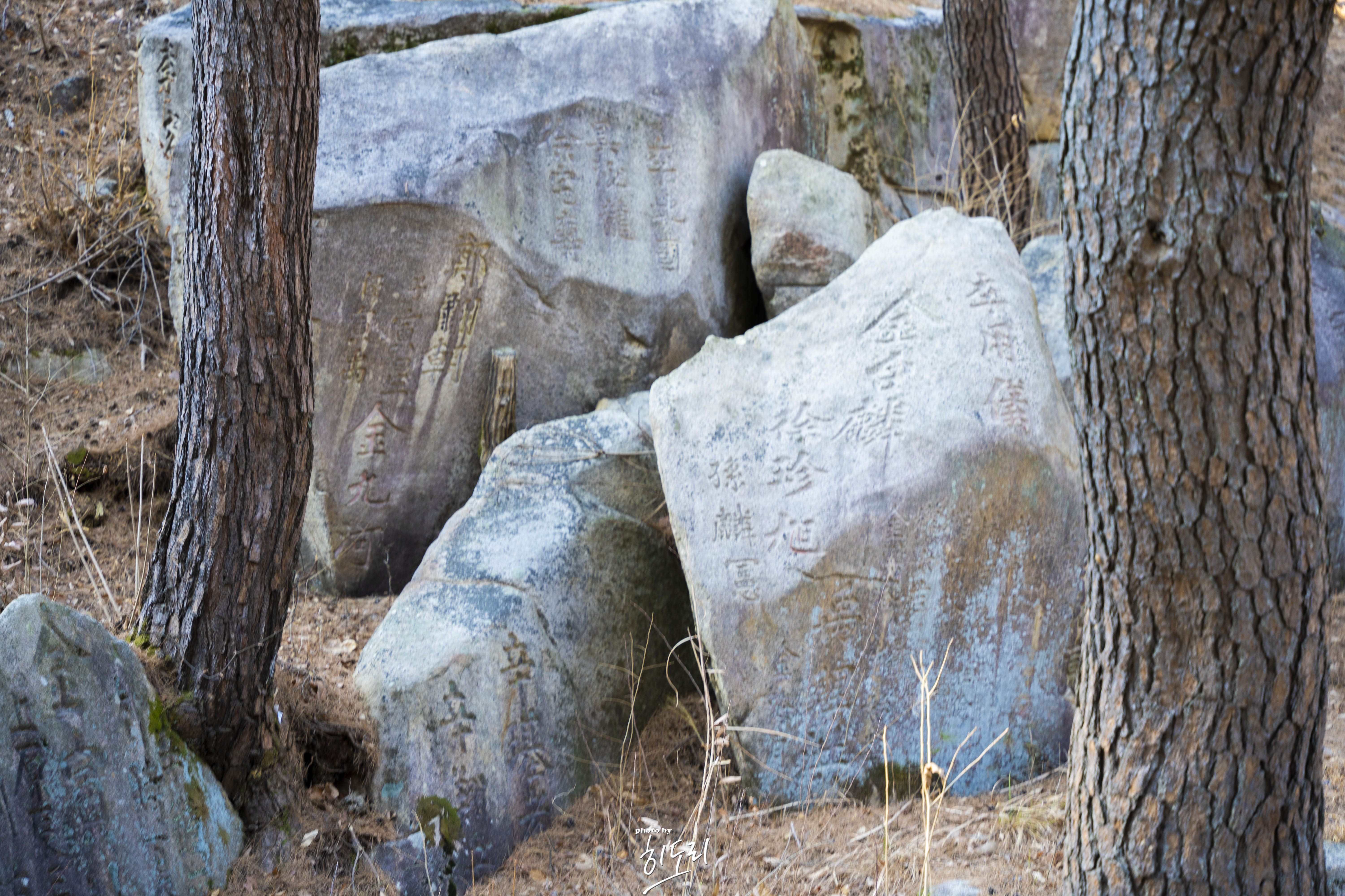 계곡 바위에 새겨진 글자들도 볼 수 있는데