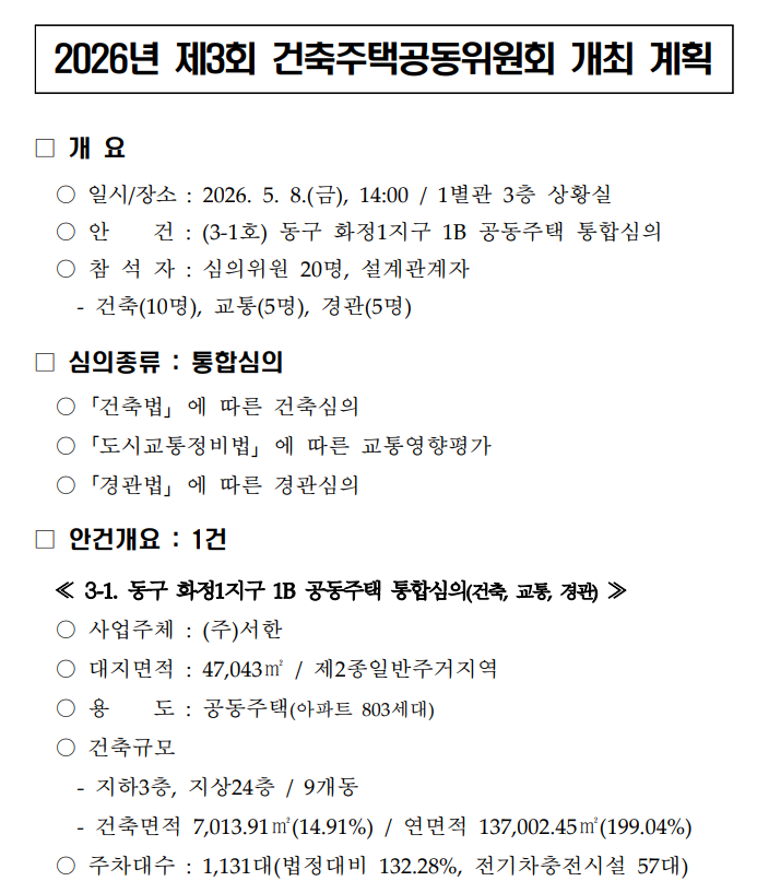 - 안건 : 동구 화정1지구 1B 공동주택 통합심의