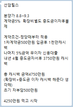- 4월 중도금 이자분 3,750만 원 캐시백