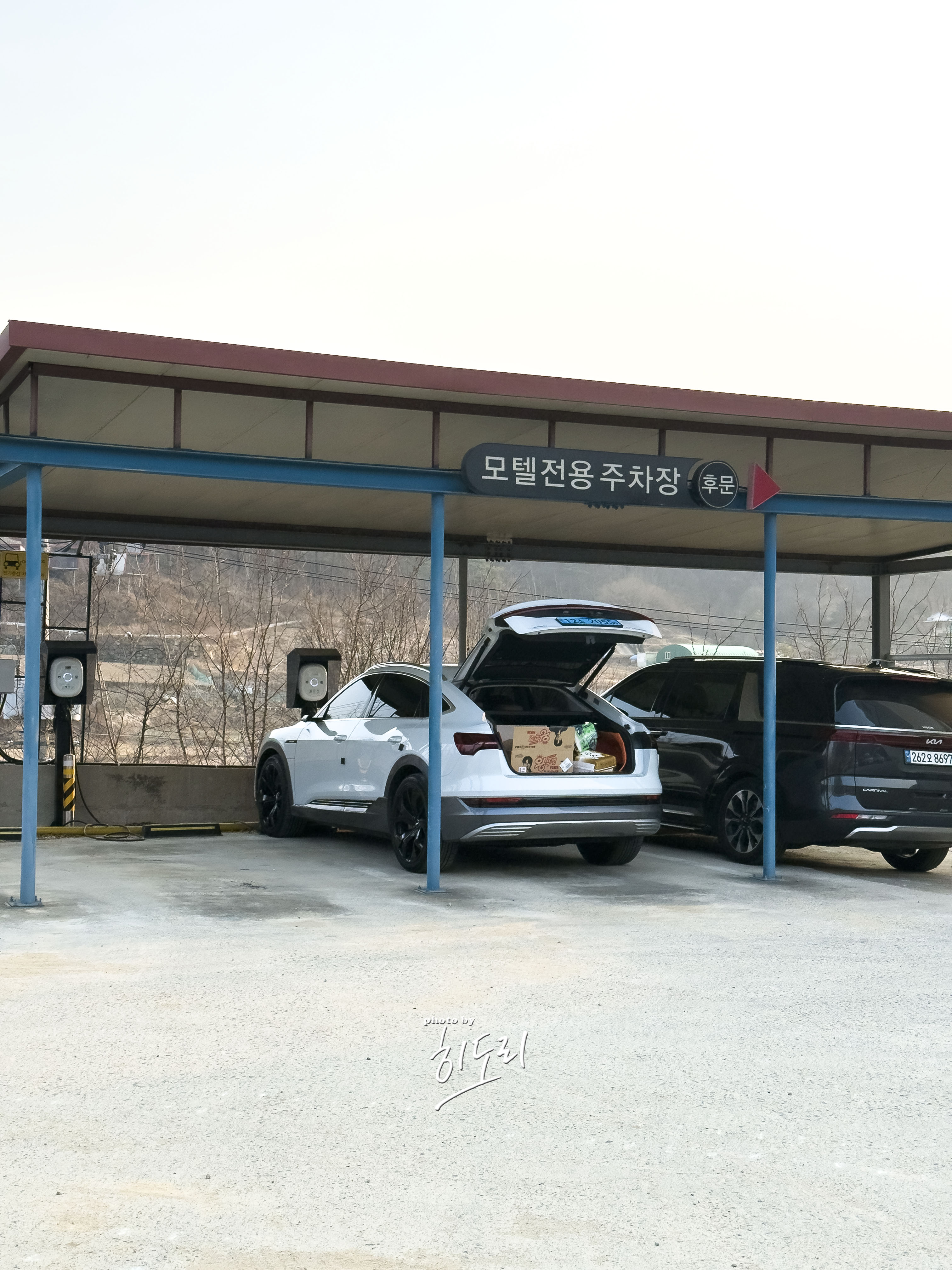 이곳을 선택한 가장 큰 이유는 바로 전기차 충전이 가능하다는점!